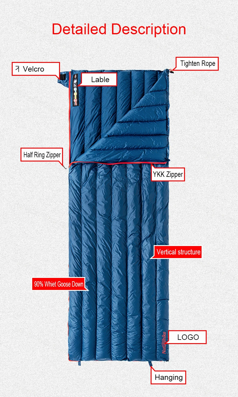 Спальный мешок Naturehike CWM400CW280, усовершенствованный, ультралегкий, с гусиным пухом, тип конверта, спальный мешок для кемпинга 800FP, уличный, мини, теплый