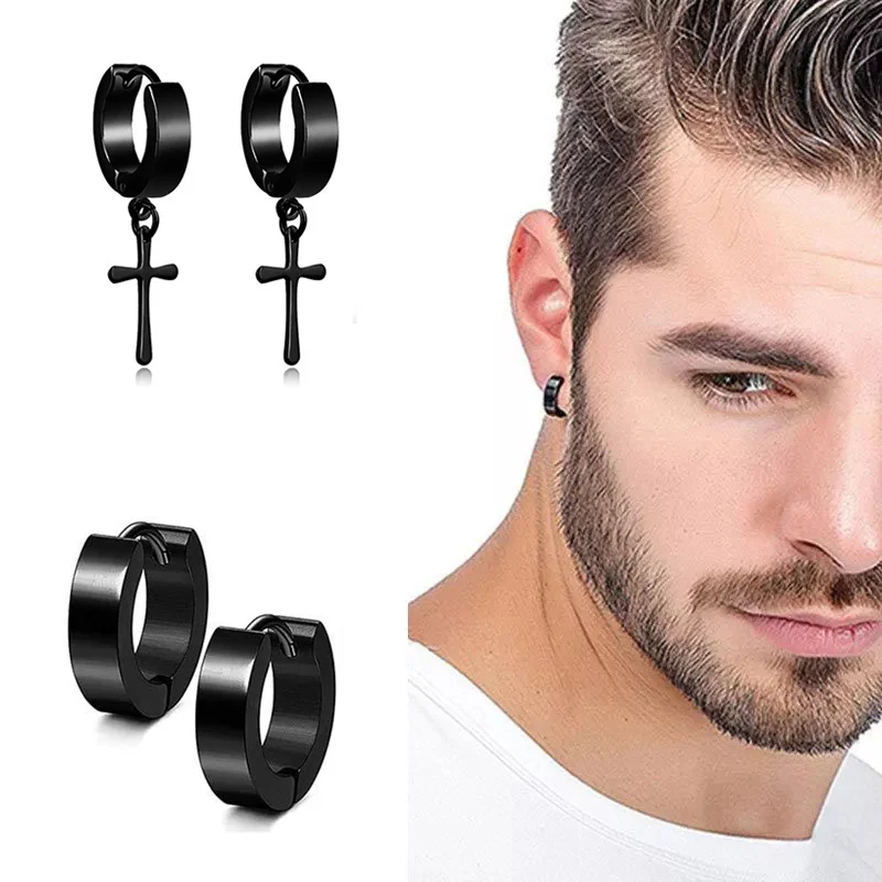 Серьги-гвоздики Rinhoo в стиле панк для мужчин и женщин, ювелирные украшения в уличном стиле, несколько стилей, из нержавеющей стали, в готическом стиле, в стиле хип-хоп, черные, 1 пара