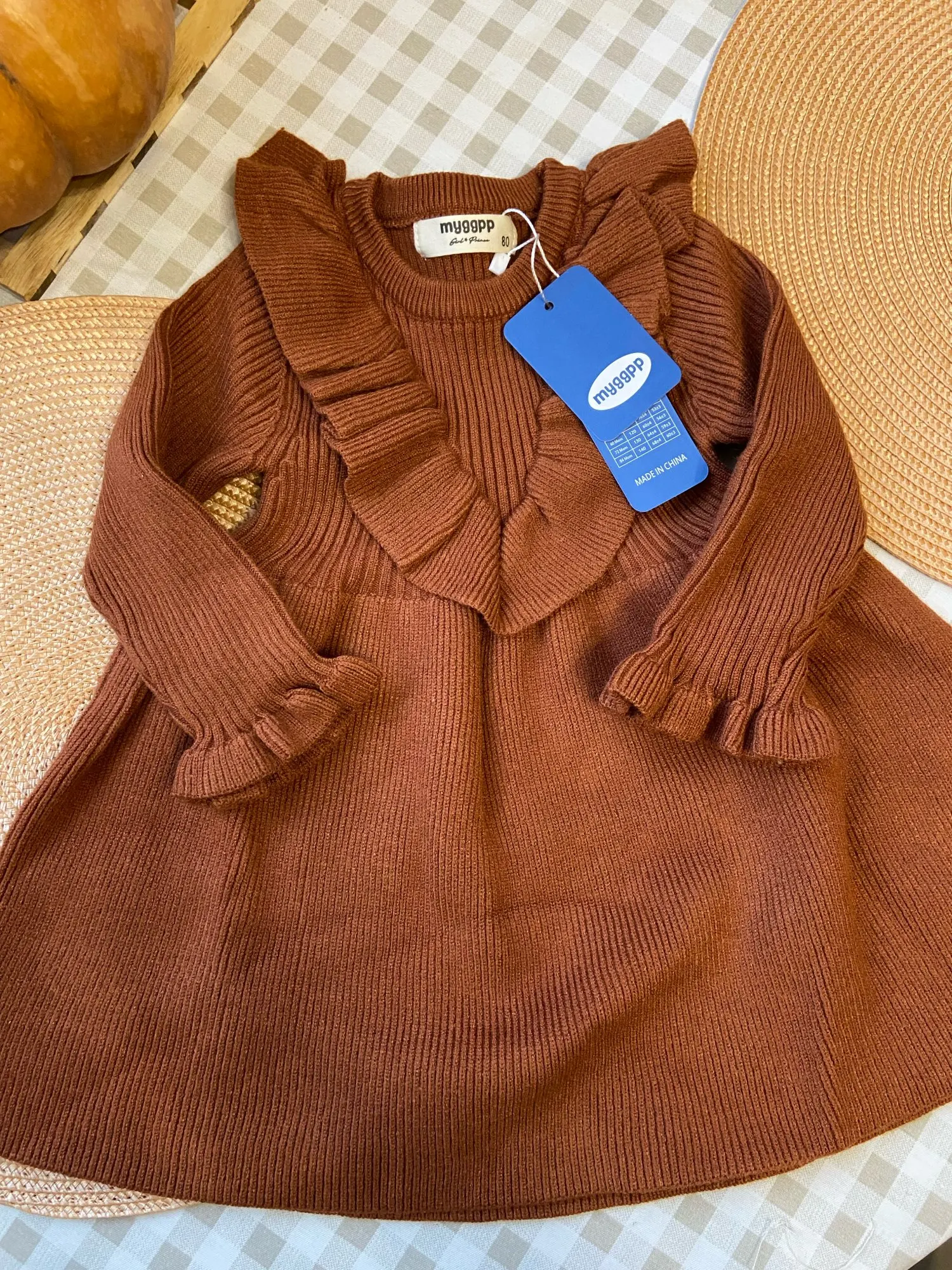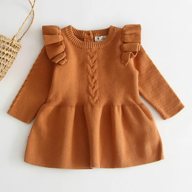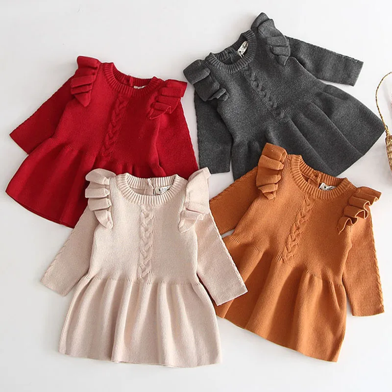 Вязаный свободный свитер для маленьких девочек на весну и осень, тонкое платье, мягкие платья для малышей, детская Рождественская одежда