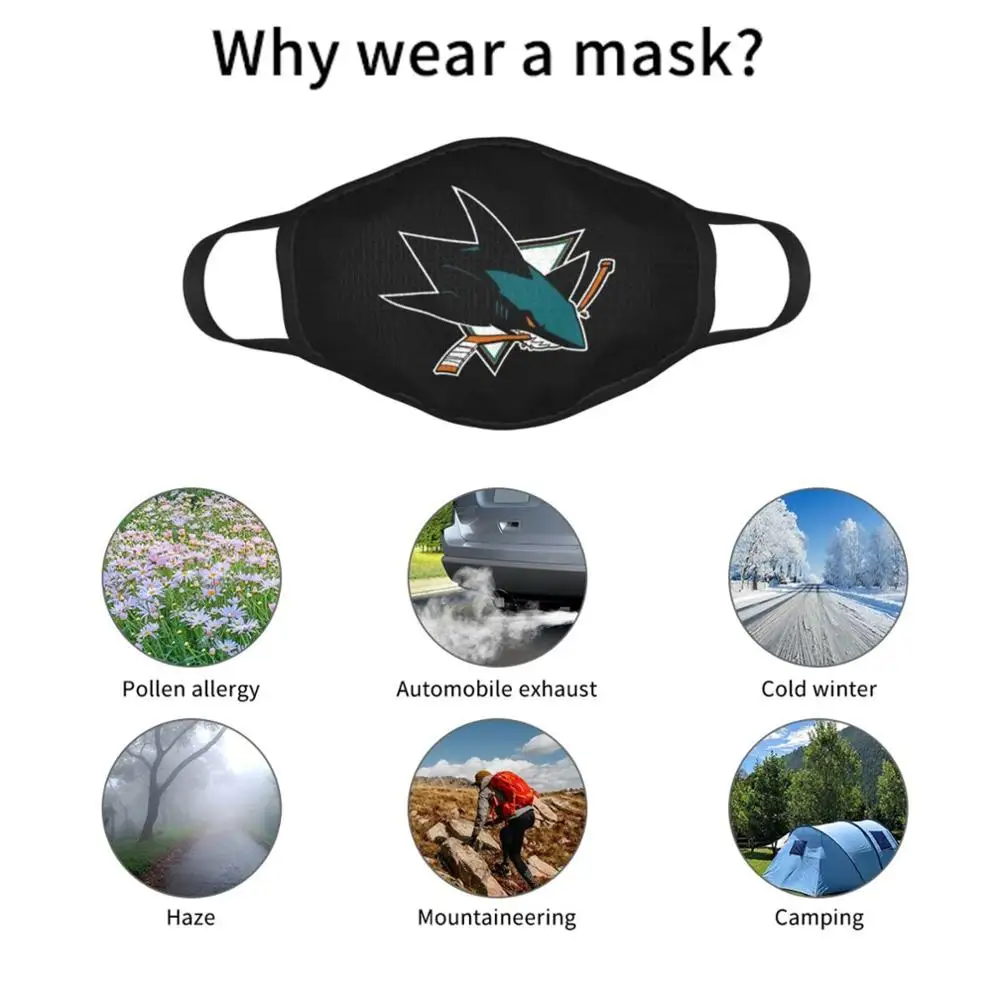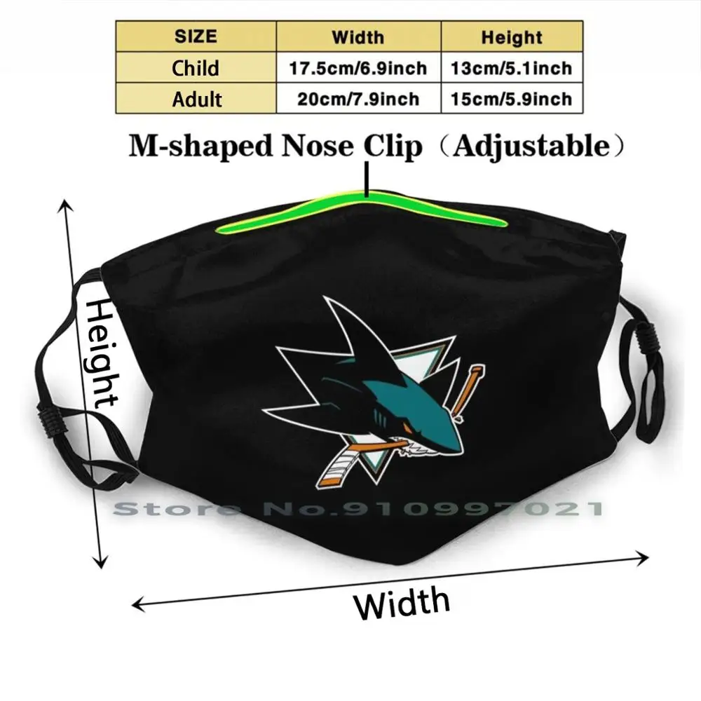 Маска для лица Shark, San Jose многоразовая Пылезащитная маска против смога с фильтрами для детей и взрослых Команда Сан-Хосе США Канада