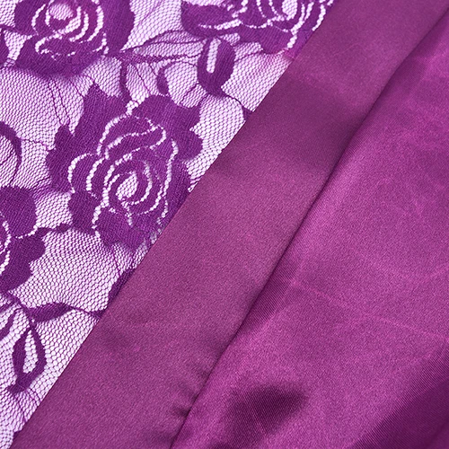 Сексуальное шелковое кружевное кимоно черного и фиолетового цветов