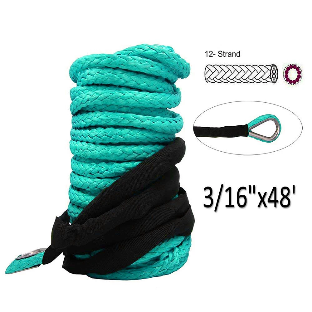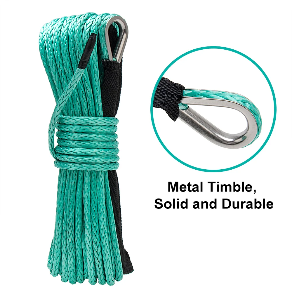 15-метровый трос для лебедок ATV UTV, высокопрочный синтетический трос для лебедок, буксировочный трос с оболочкой зеленого цвета