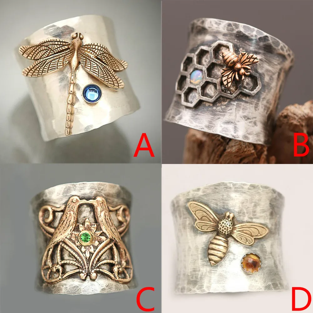 Винтажные кольца для женщин, винтажные кольца из тайского серебра с цирконом, круглой формы, резьба, стрекоза, волшебство, пчела, милые ювелирные изделия с животными для свадебной вечеринки