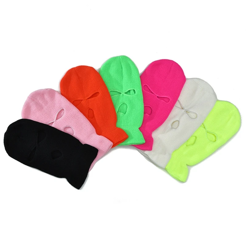 Маска-Балаклава для мужчин и женщин, неоновая однотонная вязаная теплая Зимняя Маска на все лицо с тремя отверстиями, для велоспорта, лыжного спорта, ветрозащитная