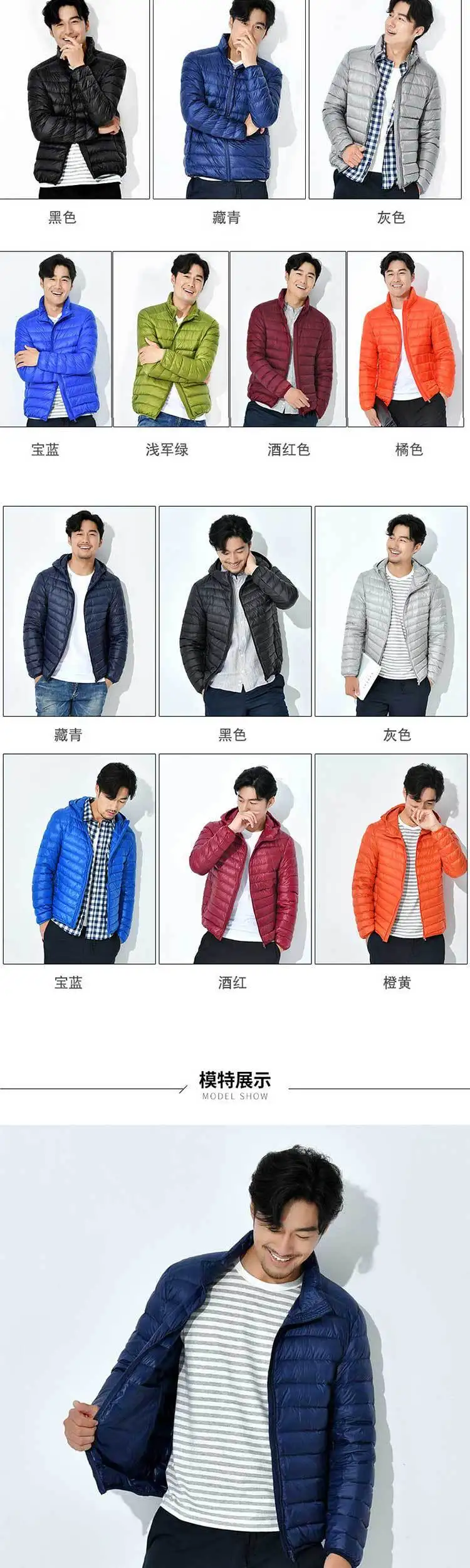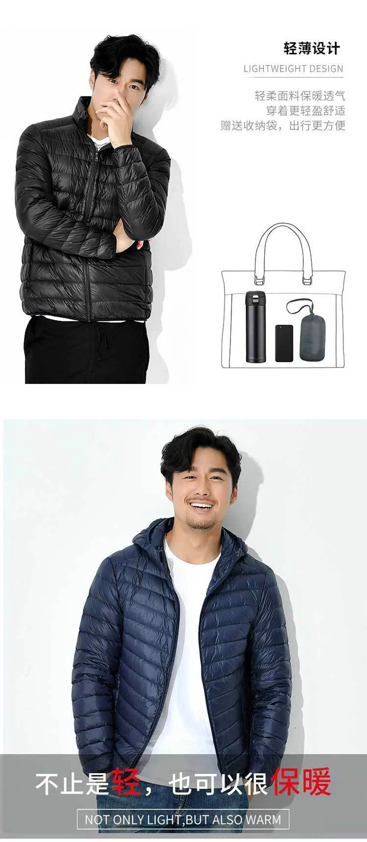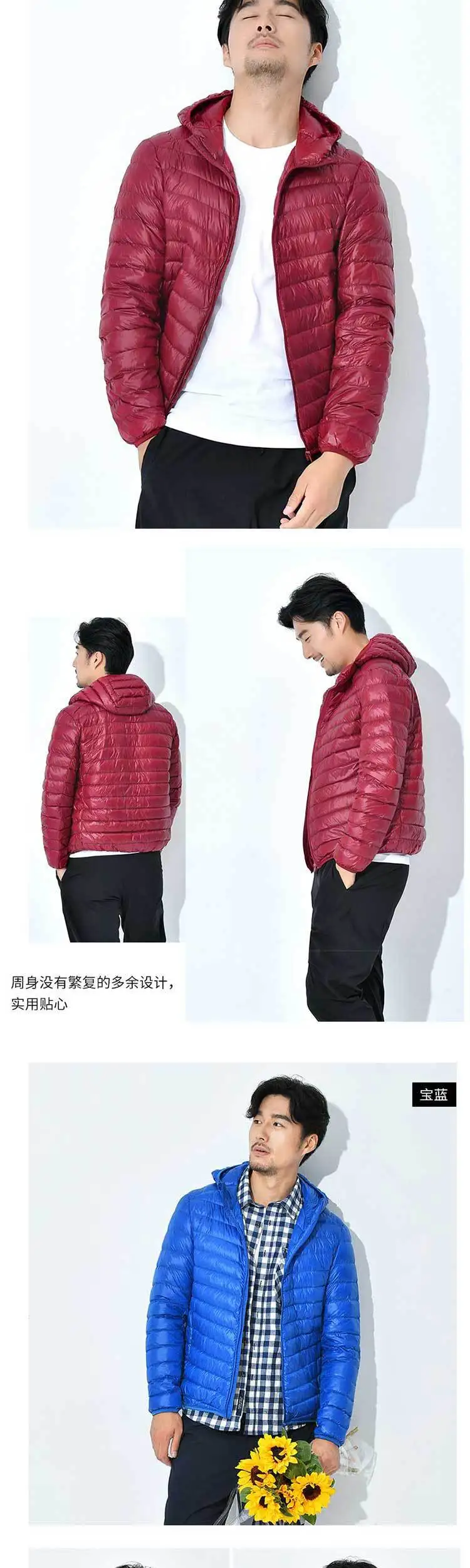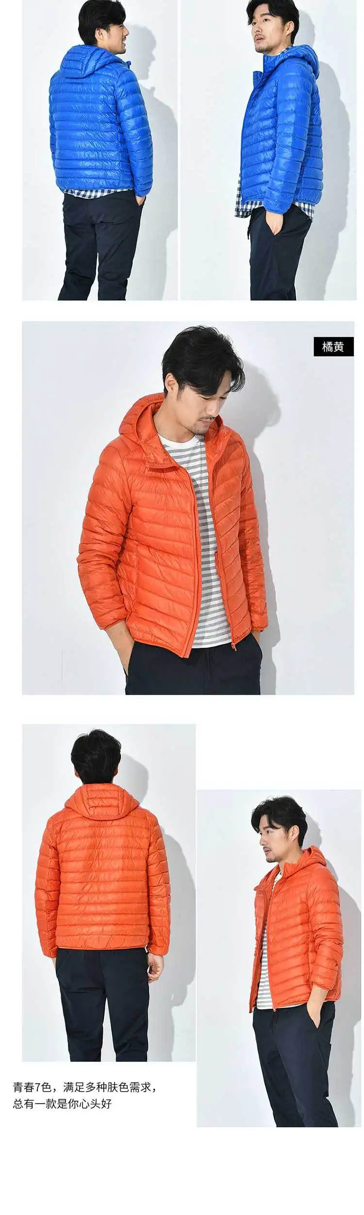 Размеры M-5XL осень пуховик Для мужчин с коротким светильник и тонкий Бизнес тренд с капюшоном плотная теплая куртка-пуховик белого цвета на утином пуху пальто куртка