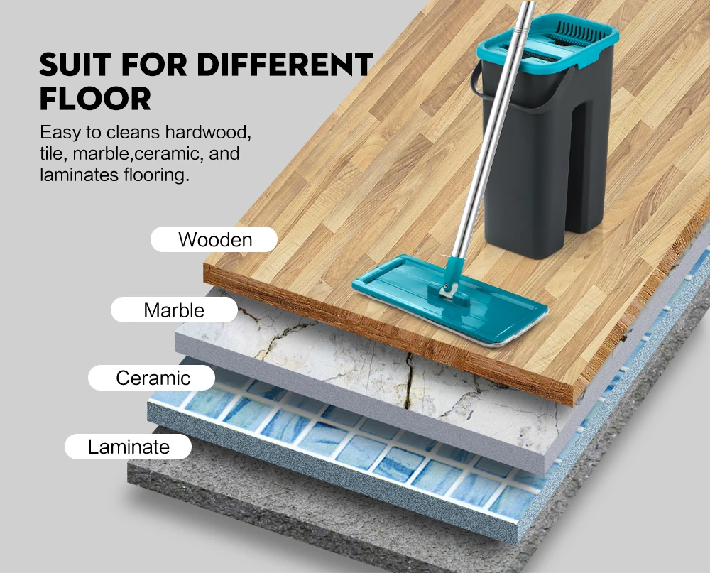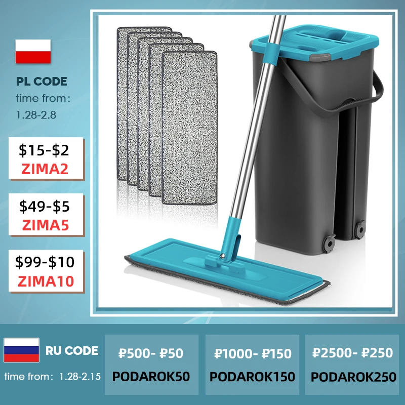 Швабра напольная с ведром, гибкая тряпка из микрофибры, с отжимом для рук