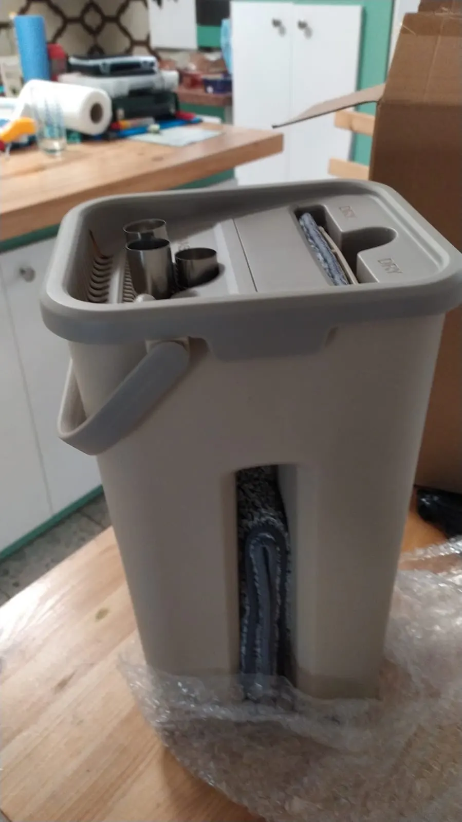 Как в описании. Ведро действительно маленькое, но gandy для переноски в разных комнатах и очистки и пополнения, если это необходимо. Длина этой модели очень длинная. Только комментарий будет в том, что Швабра не полностью попадет в воду. Верхняя часть находится выше линии в ковше. Но тем не менее, я получил чистый пол без влажных рук. Мне нравится! Получил его быстро. Спасибо продавцу!