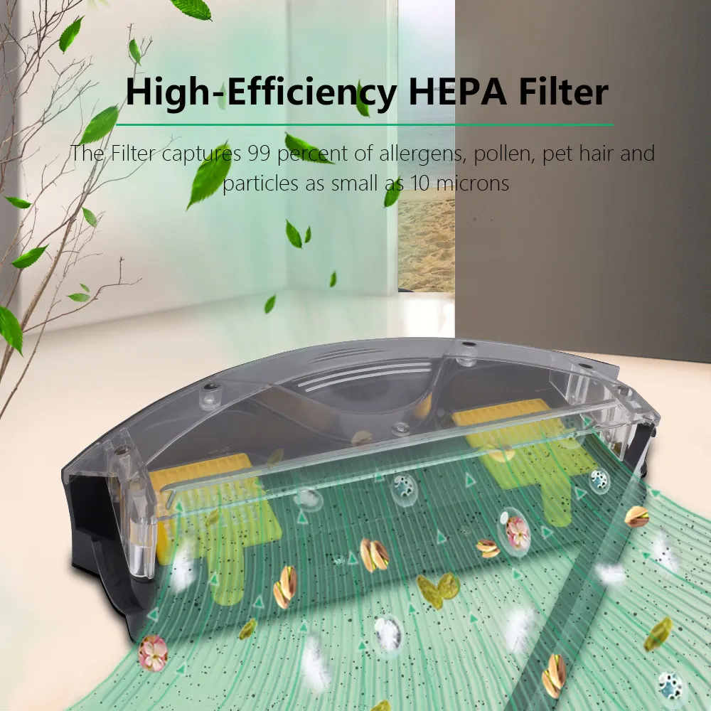 1) фильтр HEPA-style использует HEPA материал E12 и улавливает до 99.5% пыли, аллергенов и частиц.2), превосходный выбор волос домашних животных, грязи, пыли и мусора и работает на типах пола-лиственных пород, ковров и плитки.3) боковая щетка дает вам дополнительную гарантию, что вы получаете прямо против стен и глубоко в углы для превосходного покрытия очистки.4) детали и аксессуары изготовлены из экологически чистых материалов и почти не требуют технического обслуживания.5) чтобы ваш робот работал на пике производительности, рекомендуется заменять детали каждые 2-3 месяца.6) его легко заменить и установить на робот-пылесос.7), доставка с коричневой коробкой, чтобы предотвратить повреждение при транспортировке.