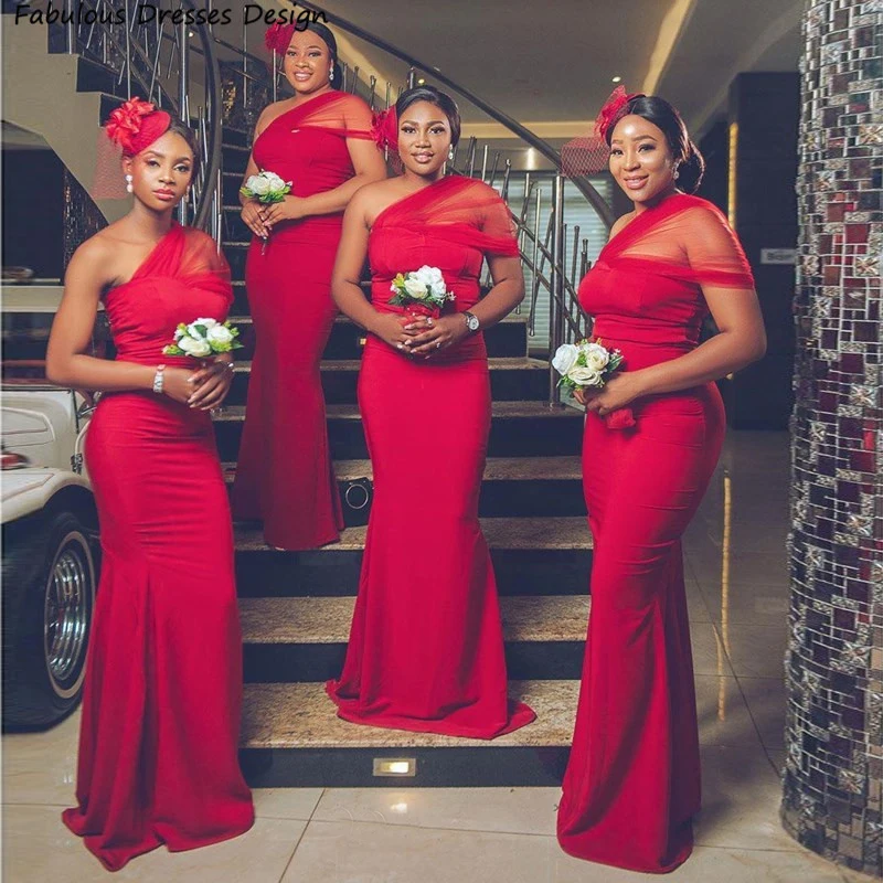 Элегантные африканские платья подружки невесты 2021 Красное длинное платье на одно плечо для свадебной вечеринки индивидуальный заказ Vestido De Fiesta De Boda