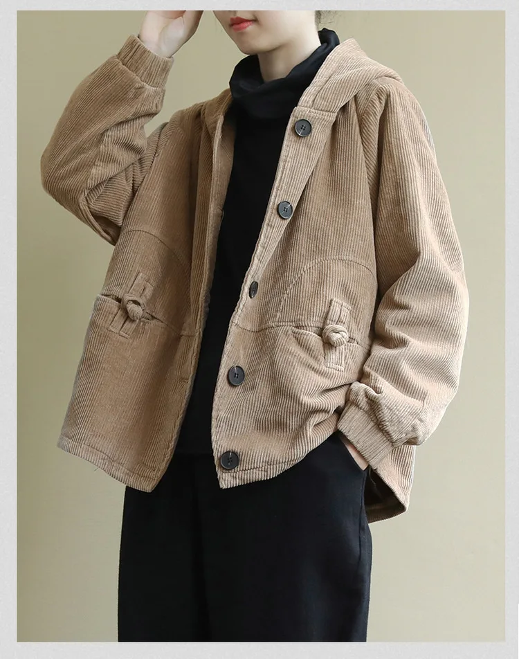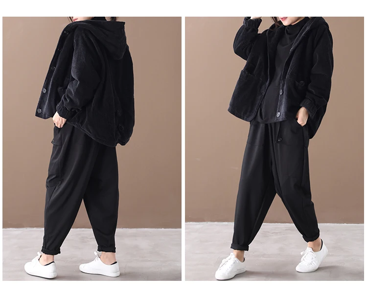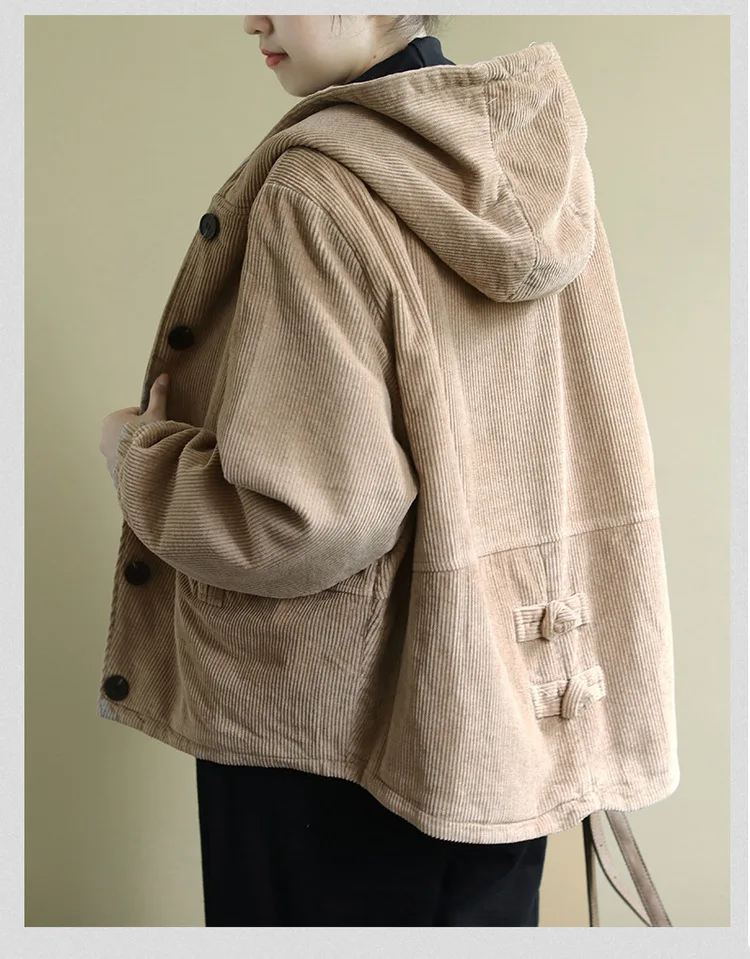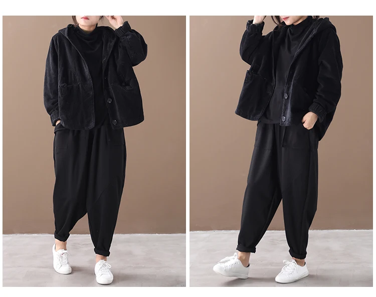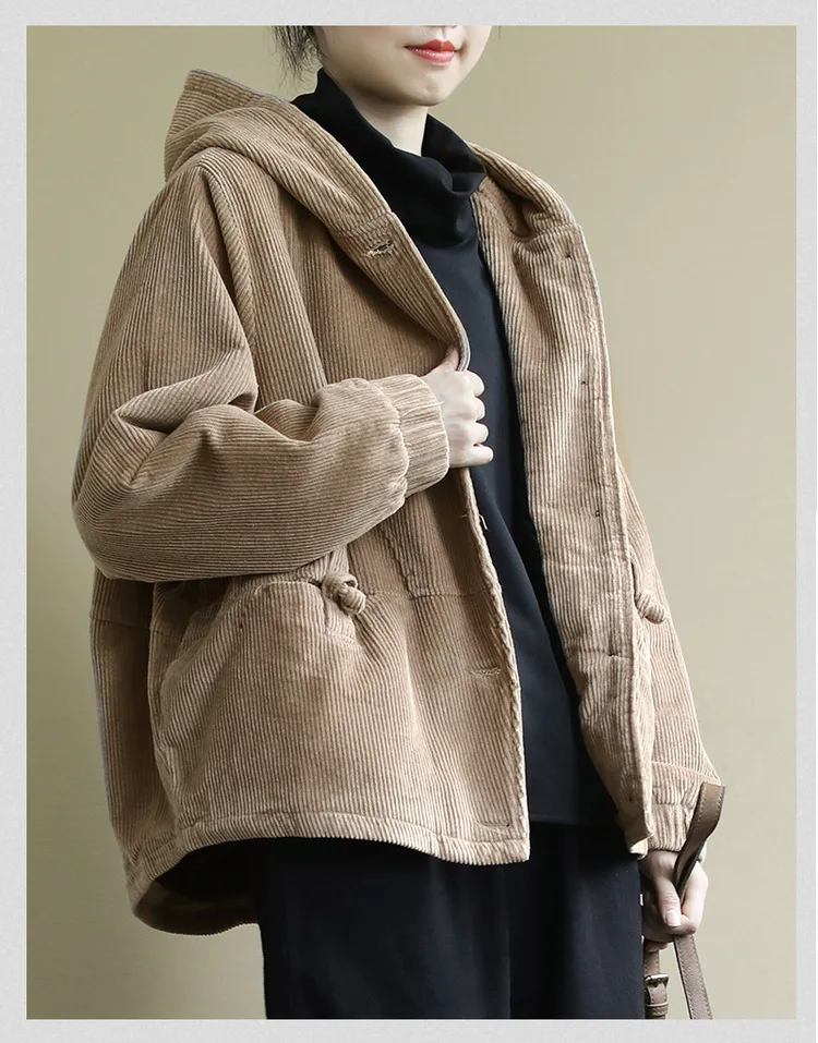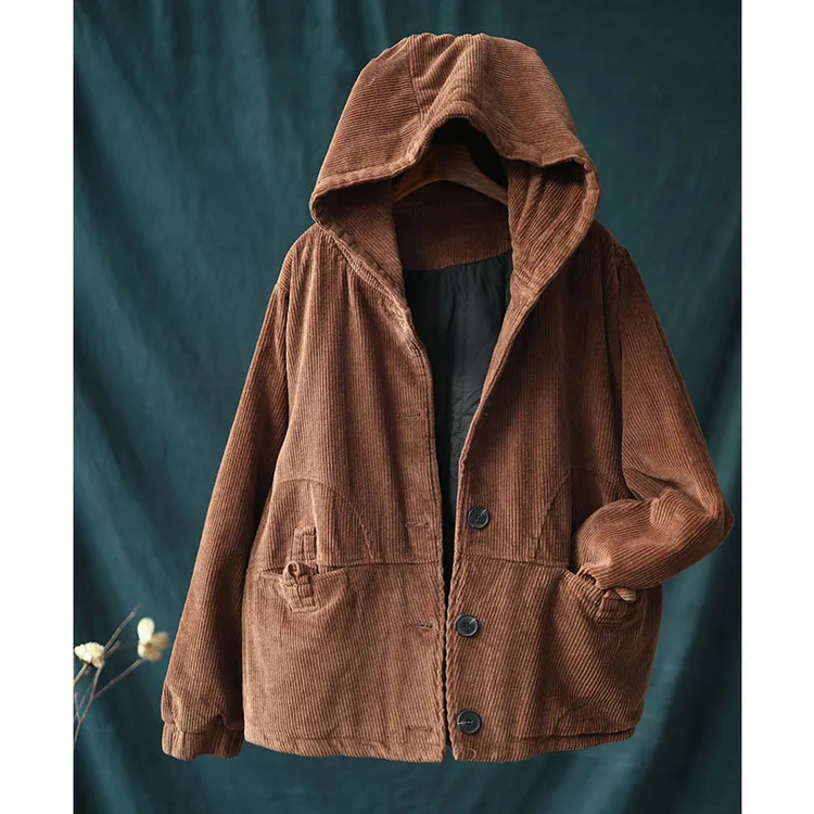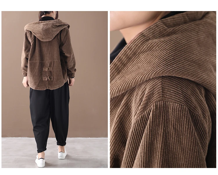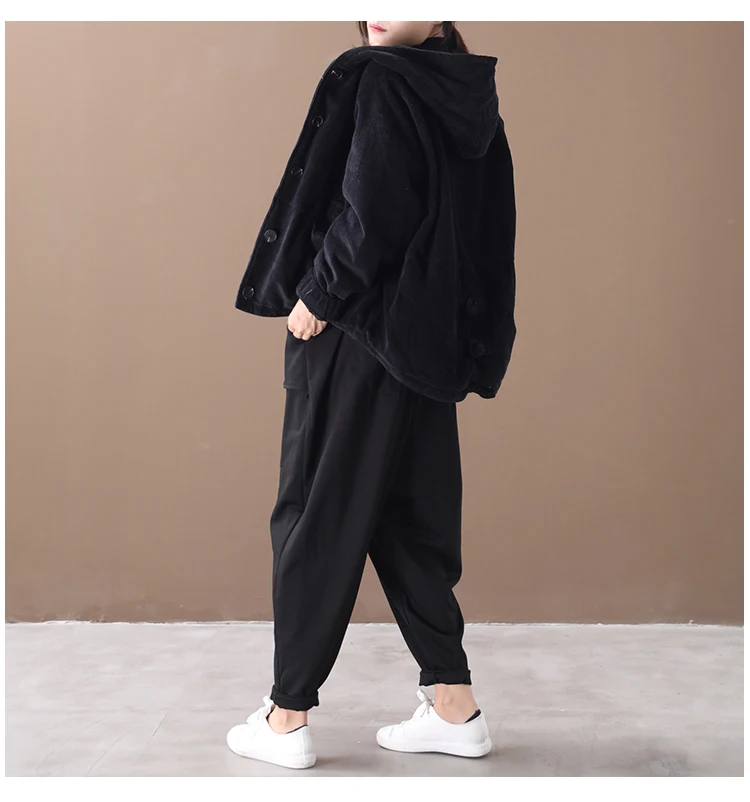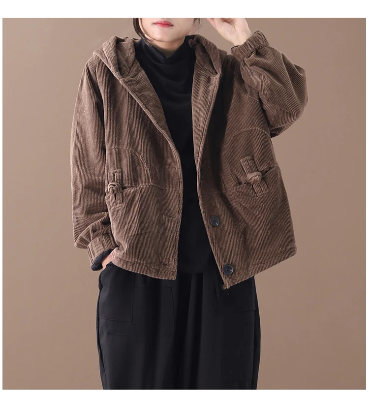 Женская Вельветовая куртка с капюшоном, черная теплая винтажная куртка с подкладкой, в готическом стиле, зима 2021
