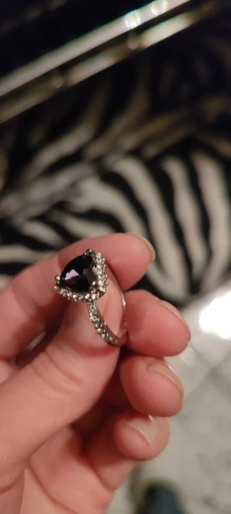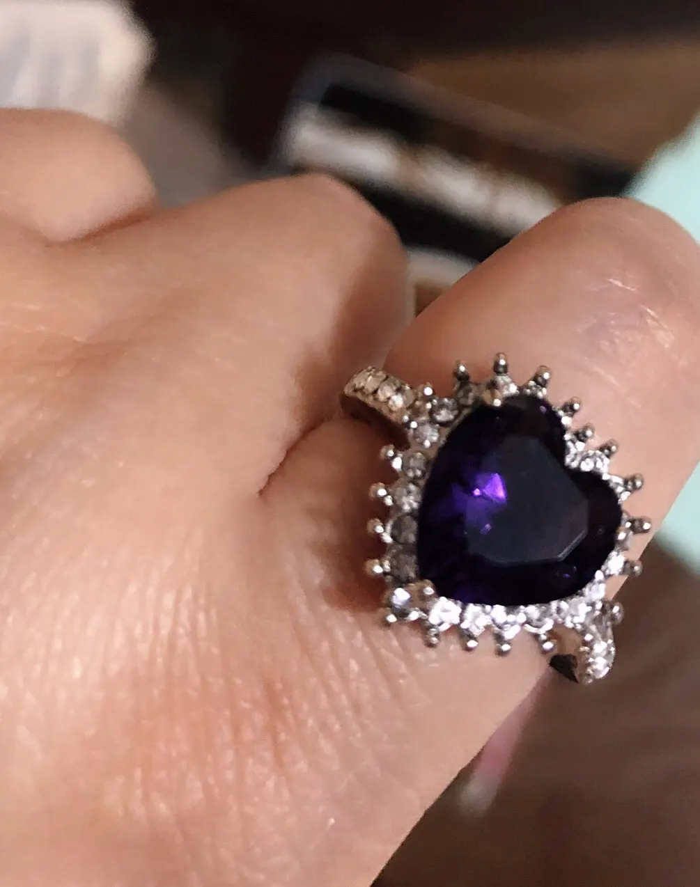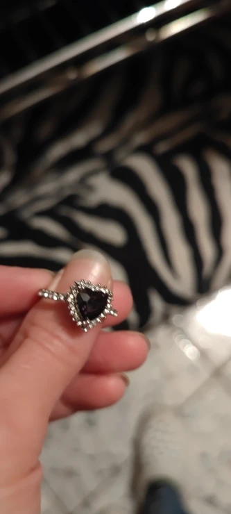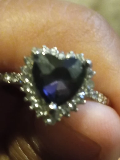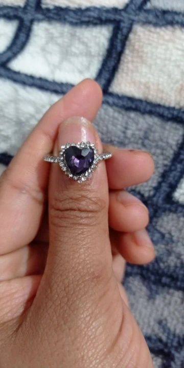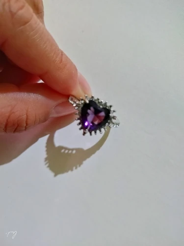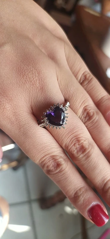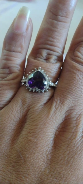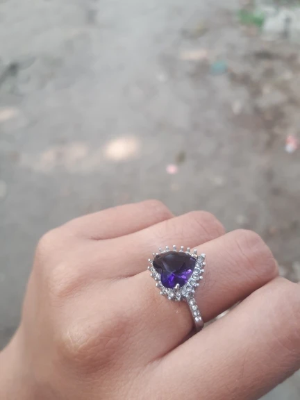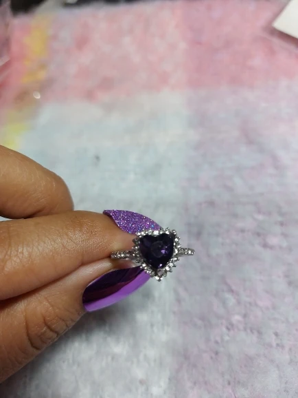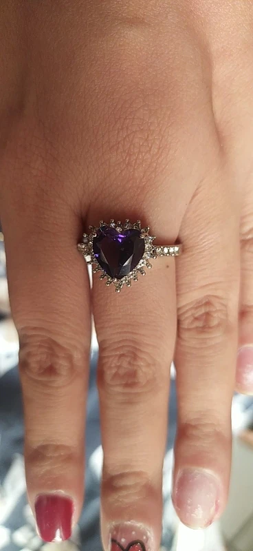 Пурпурное сердце кольцо со стразами, окружающими его. Очень мило. Идеальный костюм кольцо. Моя сестра носит его регулярно. Ей часто делают комплименты.