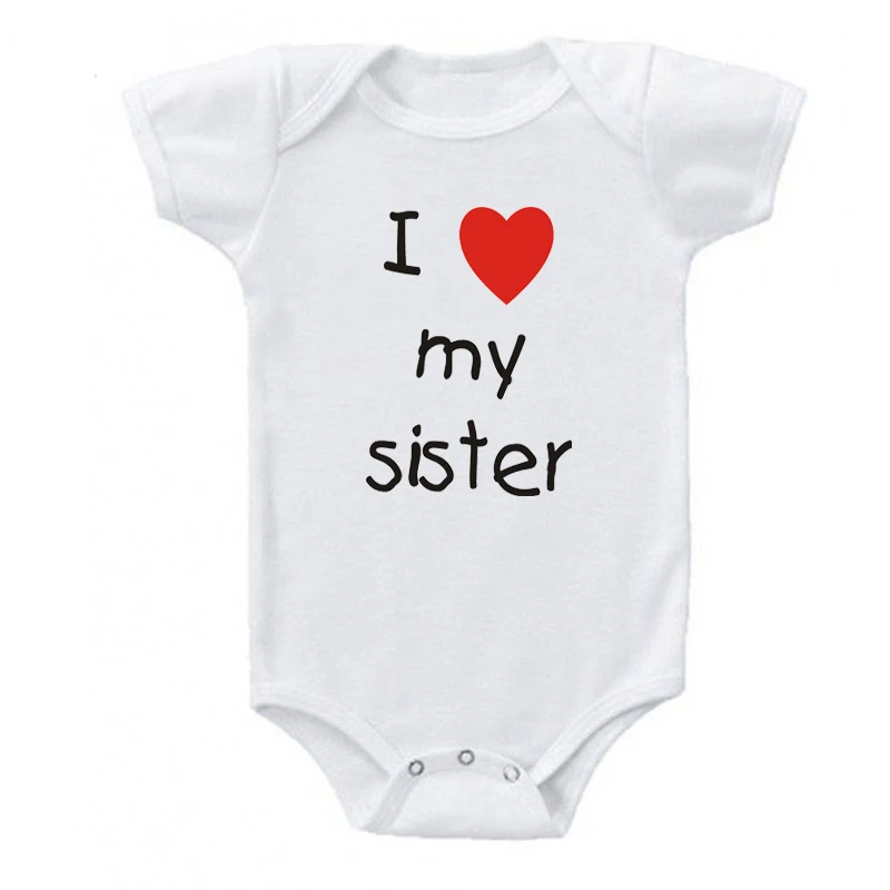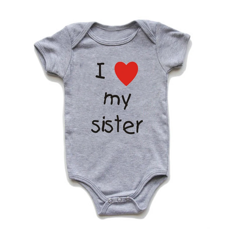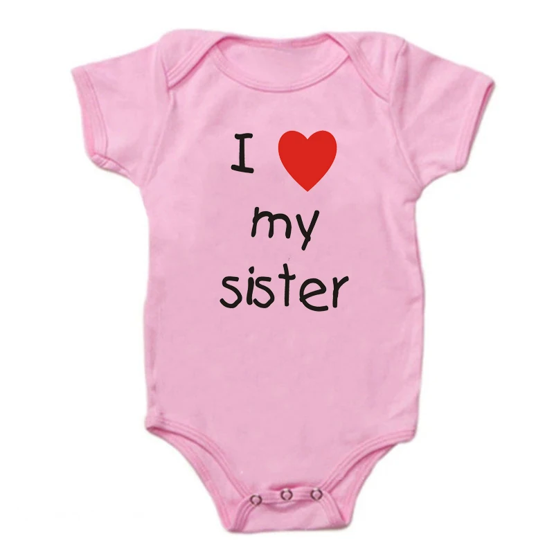 Хлопковый комбинезон для новорожденных с надписью I Love My Sister и коротким рукавом