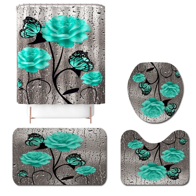 Набор ковриков для ванной и душа, фланелевые напольные коврики для туалета с цветочным принтом бабочек, нескользящий коврик для ванной комнаты