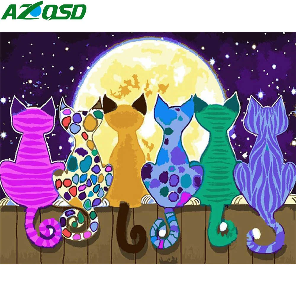 AZQSD 40x50 см картина по номерам Кот картина ремесла живопись на холсте DIY Раскраска по номерам одежда для дома с изображениями героев мультфильма Спальня стены искусства