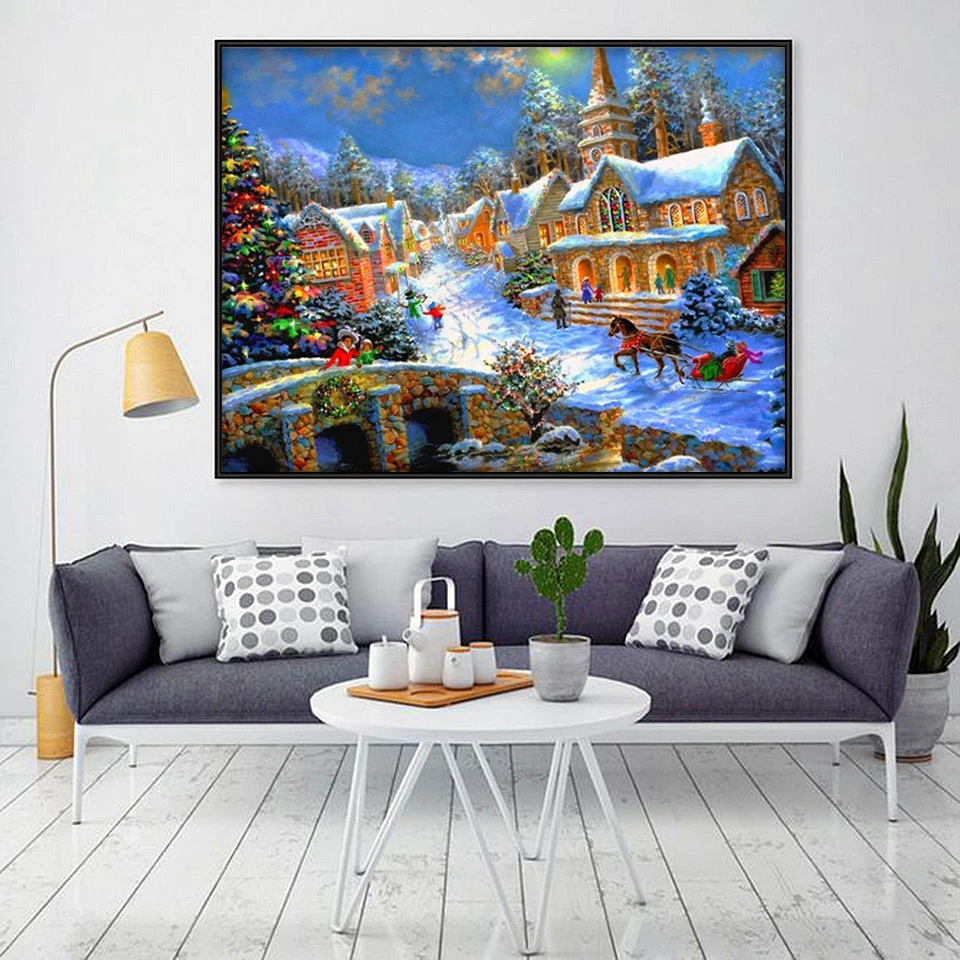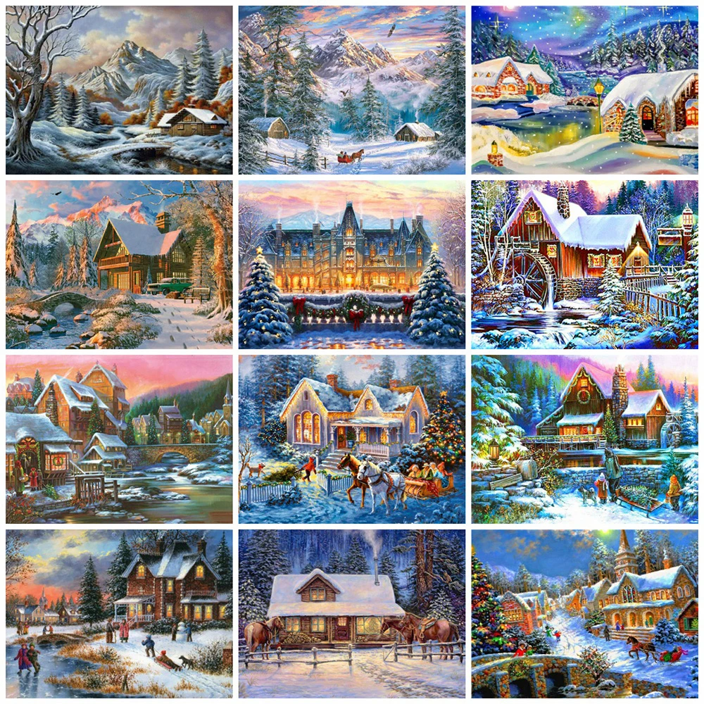 Алмазная мозаика Бусина в виде домика с изображением пейзажа, зимняя картинка Стразы