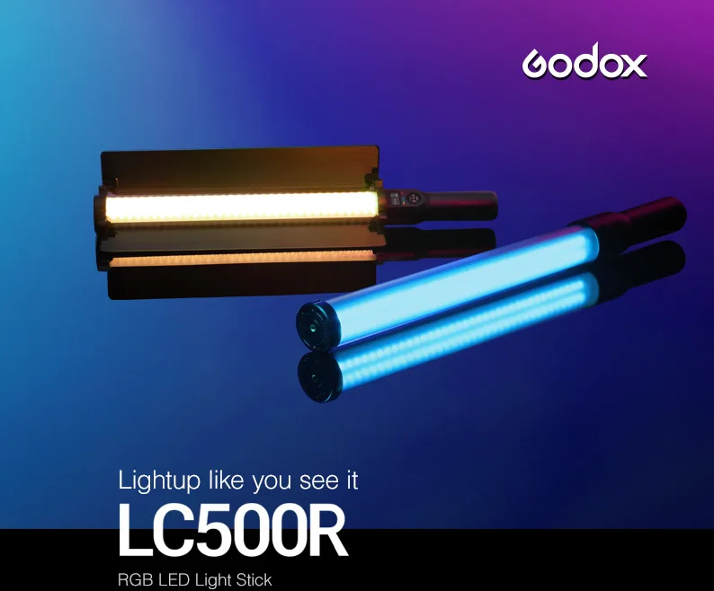 Двухцветный полноцветный светодиодный светильник Godox LC500R 2500K-8500K, RGB, световые эффекты светильник-палочка, CRI 96 TLCI 98 с пультом дистанционного управления и шторкой