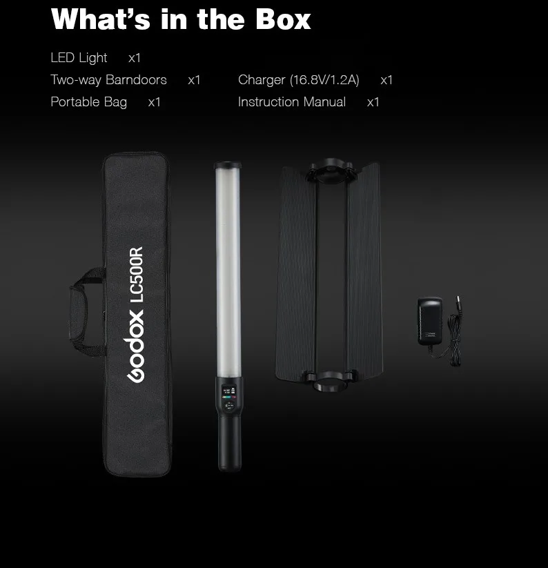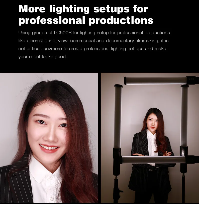 4. Пульт дистанционного управления и Barndoor include】 LC500R поставляется с беспроводным пультом дистанционного управления, который способен управлять до 6 групп в 32 каналах, что позволяет полностью контролировать светильник HSI, CCT и FX функции. Двусторонняя барная дверь также включена для пользователей, чтобы придать форму и направить светильник.