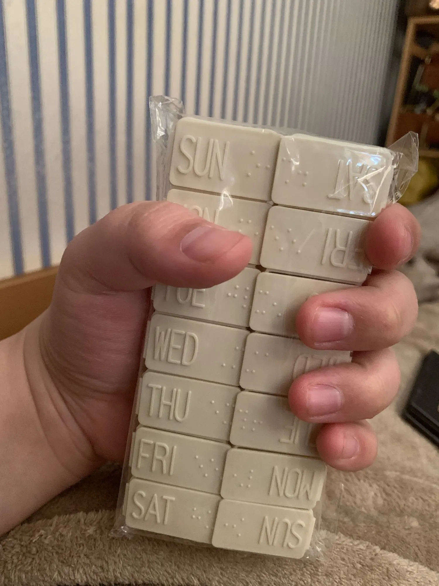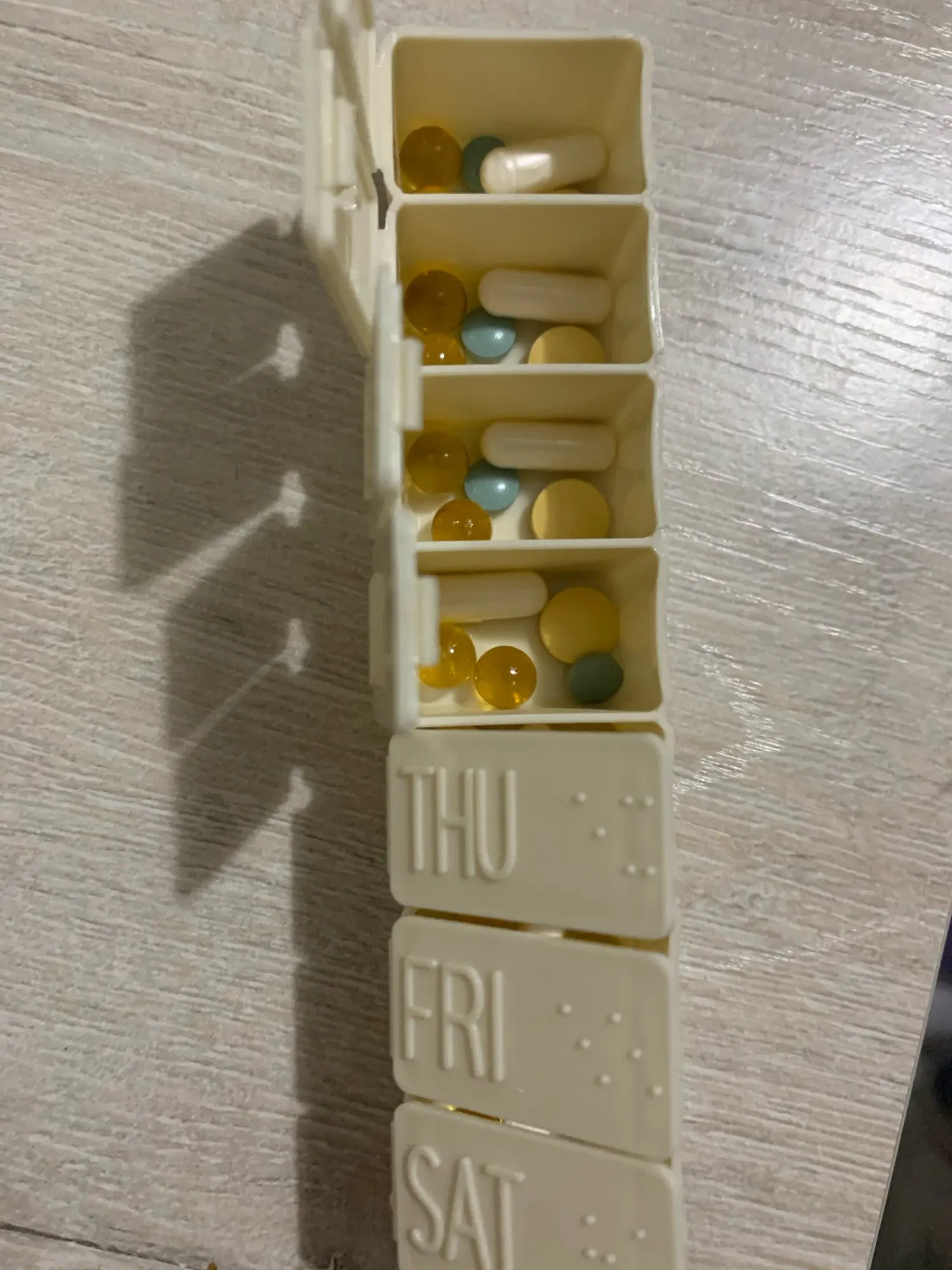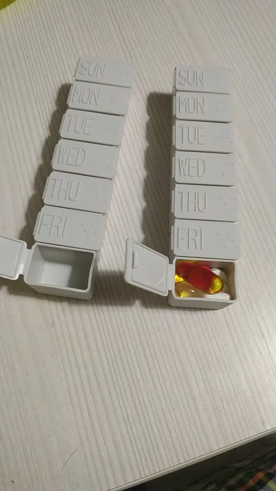 нормальная штуковина. я подписала одну утро другую вечер. если дневную дозу класть в одну ячейку - не удобно, приходится вытряхивать все и делить. неделя начинается с воскресенья- нам такое не привычно. но кто английского не знает, а написано на английском- то все равно.
