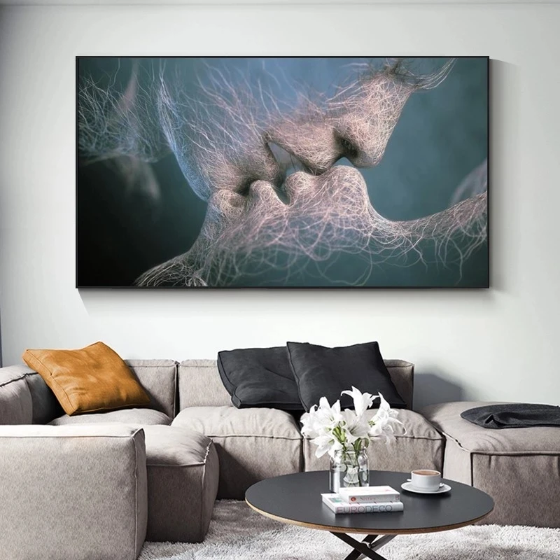 Настенные картины большого размера с изображением поцелуев пар на х...
