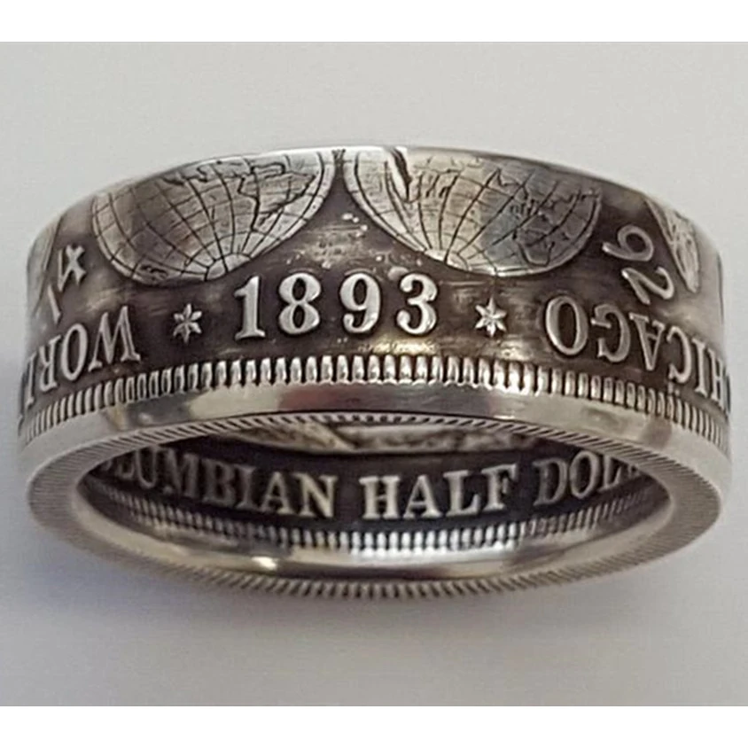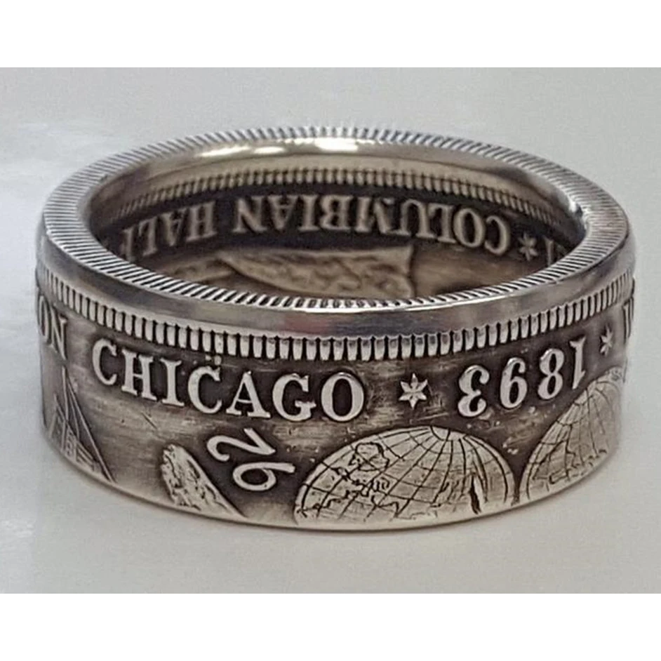 Мужское кольцо из старого серебра 1893 пробы, с гравировкой надписи Чикаго Коламбия, для коктейвечерние, ювелирные украшения для исторических событий аксессуары для пальцев