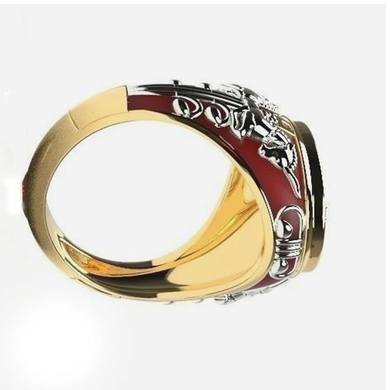 Большое кольцо золотого цвета мужское массивное властительное кольц...