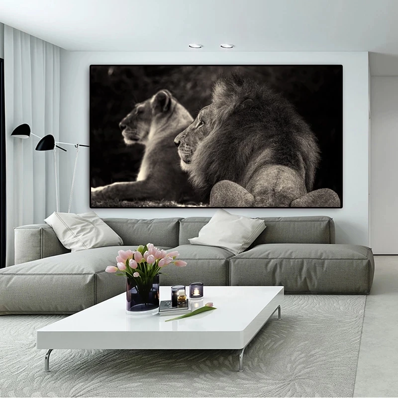 Картина на холсте с головой к голове львы, плакаты и принты с мягки...