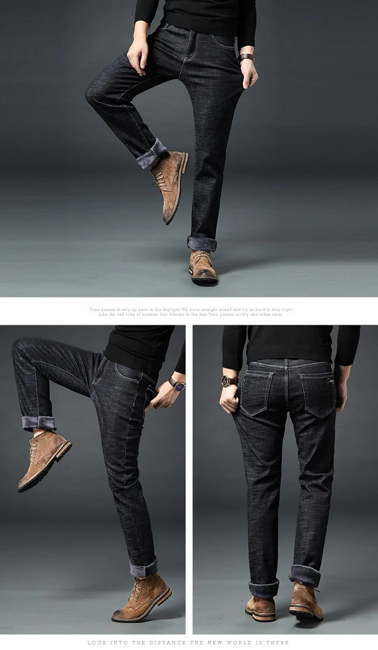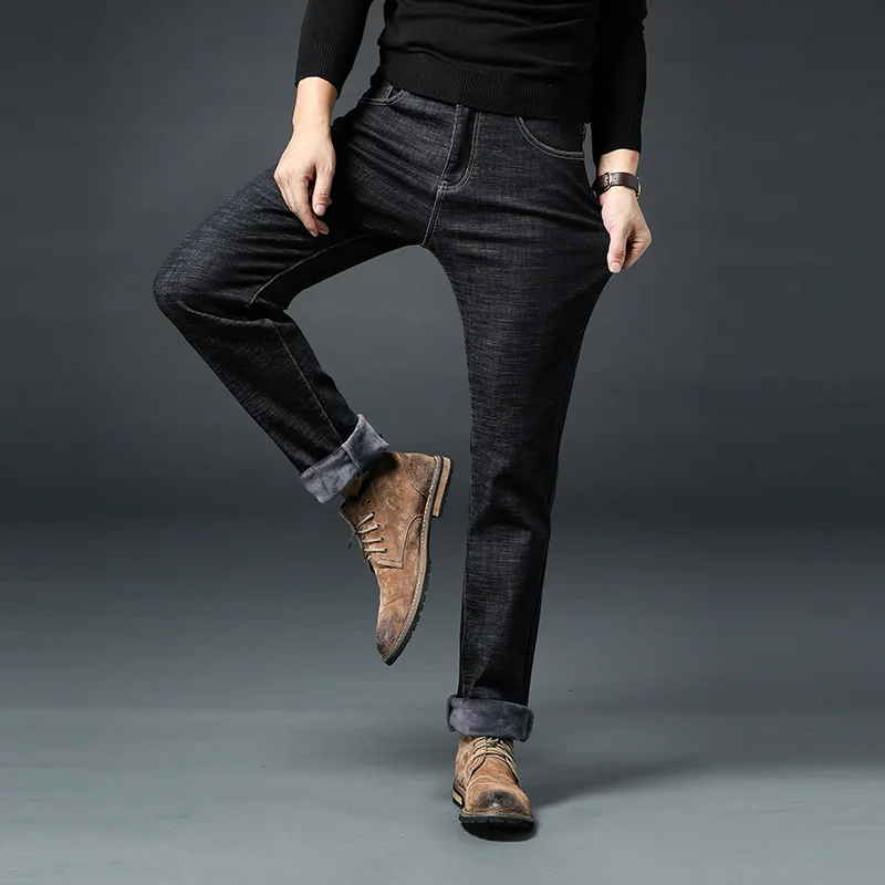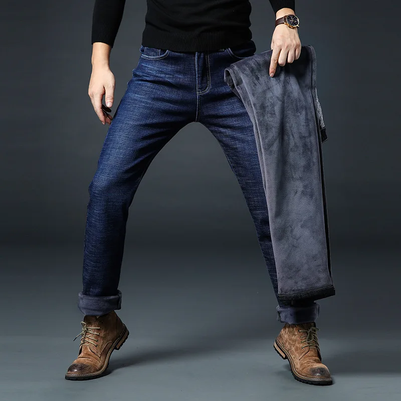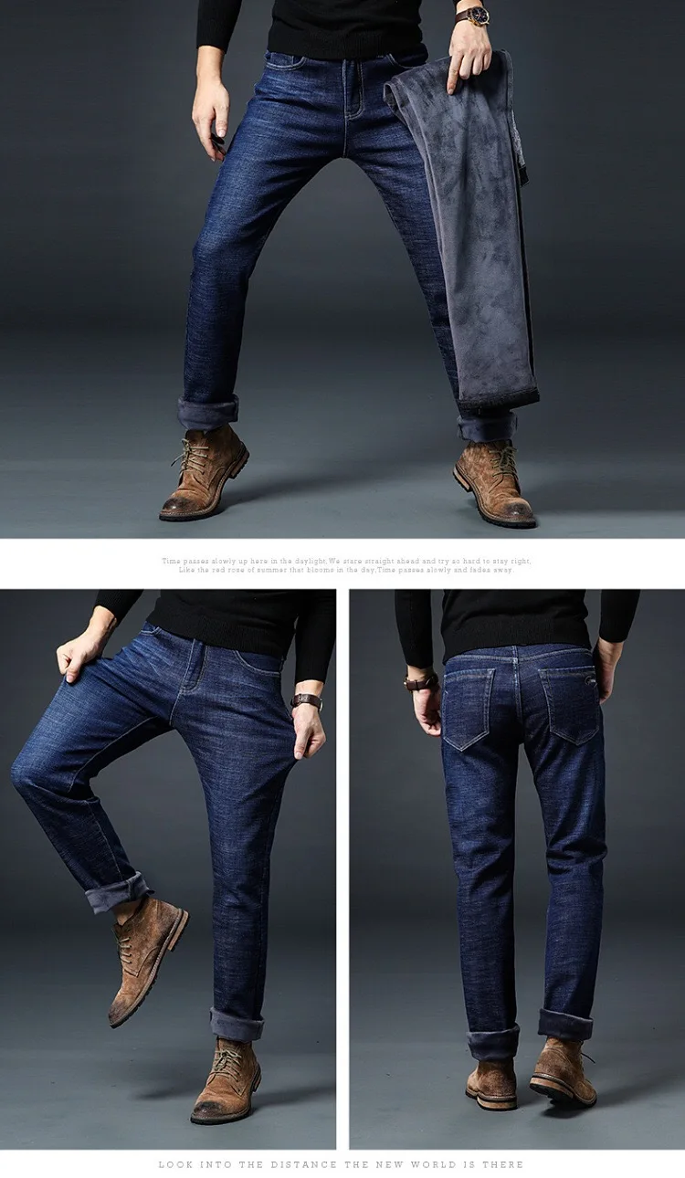 2020 зимние мужские теплые флисовые бизнес модные утепленные штаны из денима, тянущиеся джинсы мужские размера плюс, 42, 44, 46