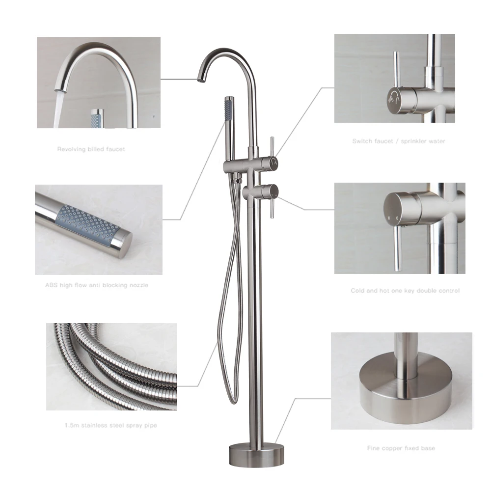 Отдельно стоящий матовый черный смеситель для ванны, хромированный полированный Смеситель для ванны с креплением на пол, смеситель для ванны с никелевой щеткой, смеситель для душа