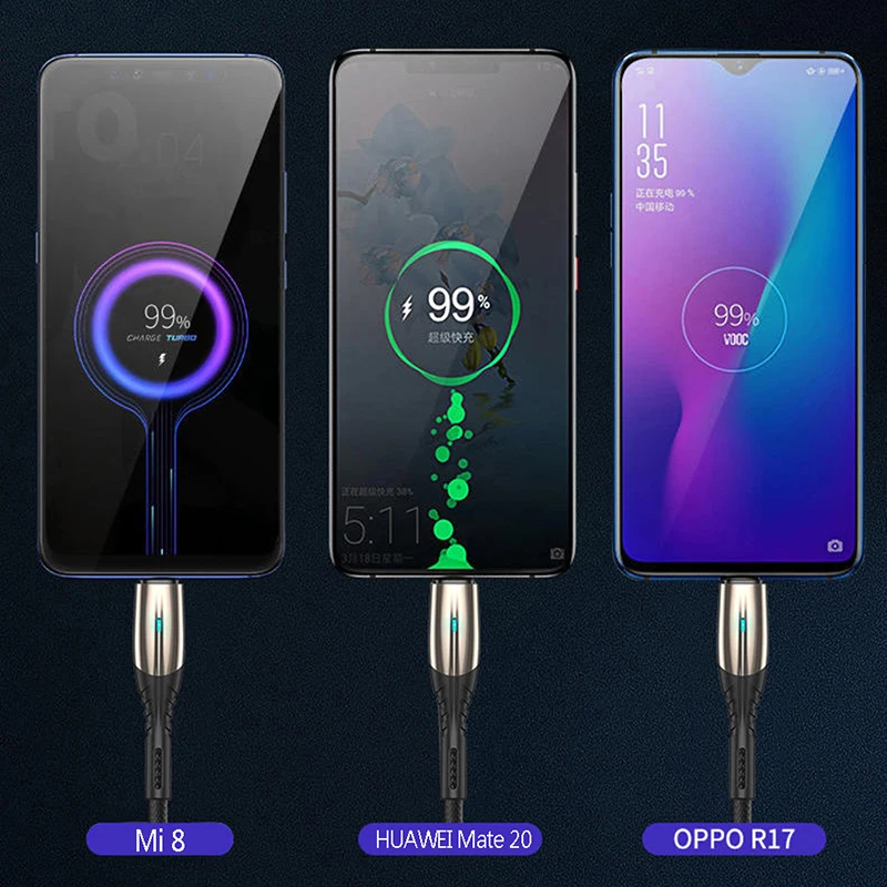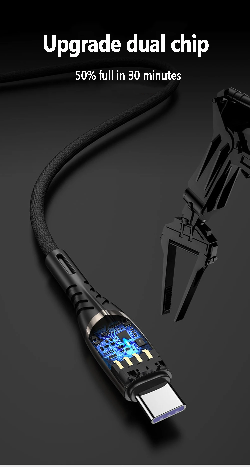 Кабель USB type-c 5A для Samsung A50, 20, 10, Huawei P30 Pro, быстрая зарядка, светодиодный мобильный телефон, зарядный USB-кабель для Xiaomi