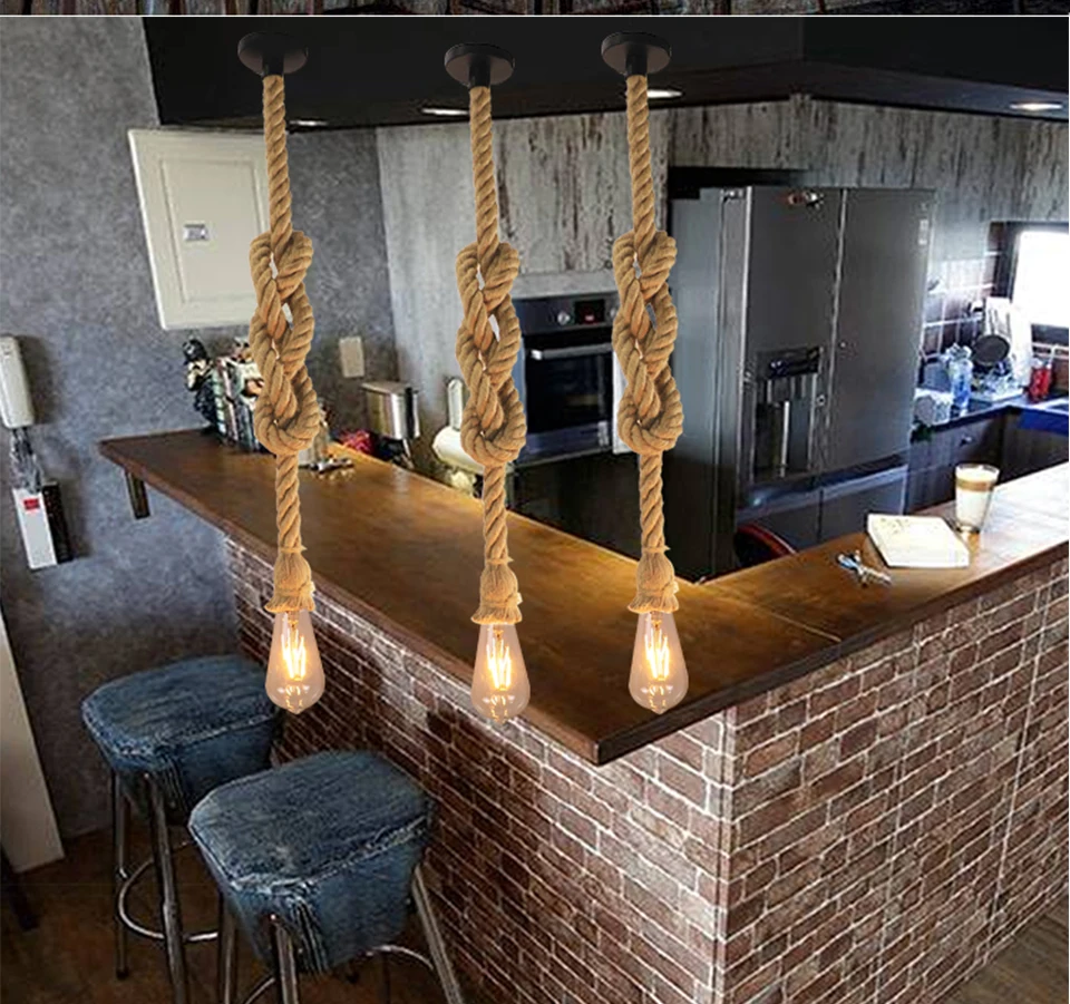 Винтажные подвесные светильники из пеньковой веревки 5 м 4 м 3 м 2 м 1 м Лофт ретро промышленное освещение Декор подвесной светильник E27 110 В 220 В для ресторана