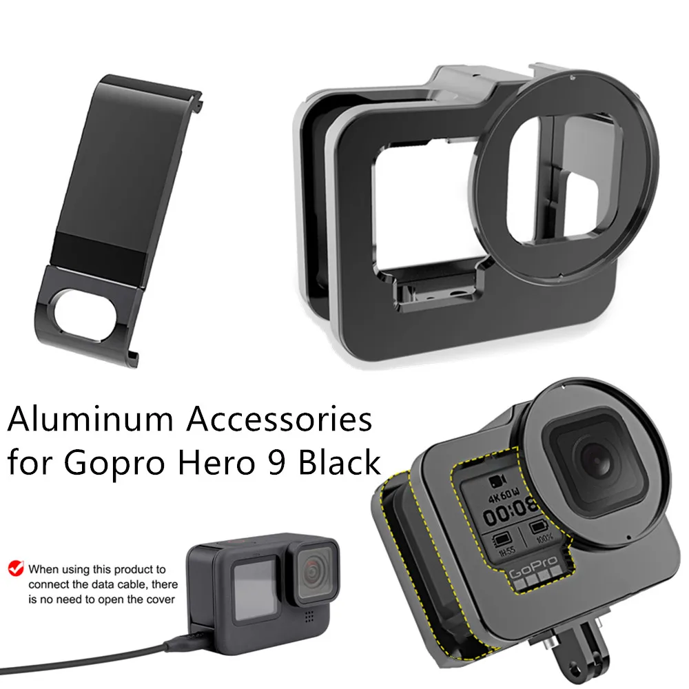 Алюминиевые аксессуары защитная рамка чехол со съемной крышкой батарейного отверстия боковая крышка зарядного отверстия для камеры Gopro Hero 9