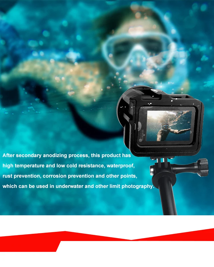 CNC Литье металла, предлагаем анти-шок, ударопрочный, легкая защита для вашего GoPro. 52 мм разъем на чехол позволяет применять УФ-объектив, объектив фильтра, поляризационный объектив диаметром 52 мм. Боковая открытая конструкция удобна для зарядки и замены карты памяти. Три разных положения для подключения других аксессуаров GoPro, обеспечивают горизонтальную и вертикальную съемку Разъем для холодной обуви позволяет подключать внешний светильник и другое оборудование.