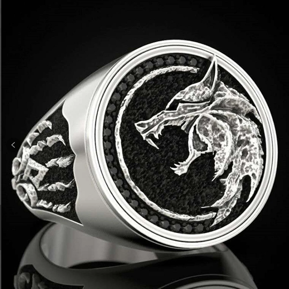 Кольцо мужское в стиле старого серебра, Брендовое кольцо с волчьим ...
