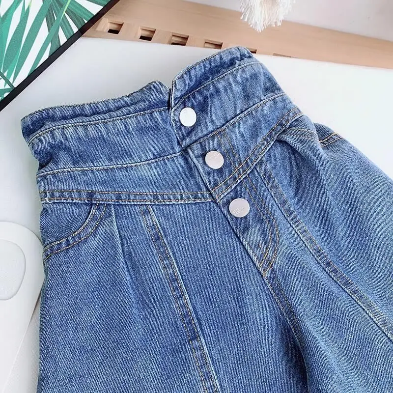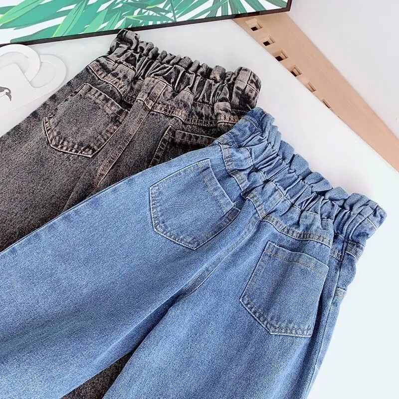 Джинсы для девочек, с широкими штанинами, на весну и осень, детские, свободные, прямые, мягкие, из денима, джинсы с высокой талией