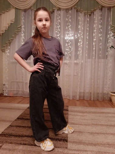 Хорошие джинсы за свою цену! На девочку 7 лет заказала размер 8Т - по росту идеально! Но на худенькую немного широки в талии. Так что смело можно брать на плотненьких. Сзади джинсы на резинке, не регулируются. Продавец товар отправил оперативно. Посылка до ПФО дошла за 2 недели!!! Продавца и товар рекомендую!