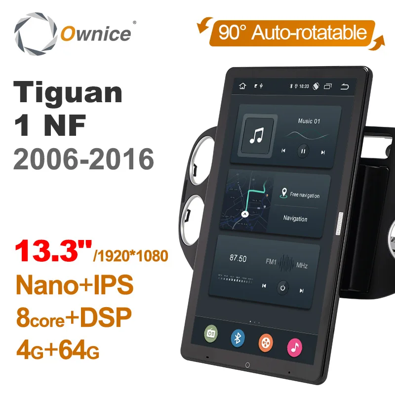 13,3 дюймовая 1920*1080 Ownice 1 Din Android 10,0 Автомагнитола для Volkswagen Tiguan 1 NF 2006 - 2016 GPS плеер Авто поворотный Nano