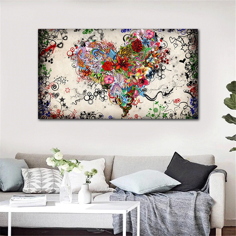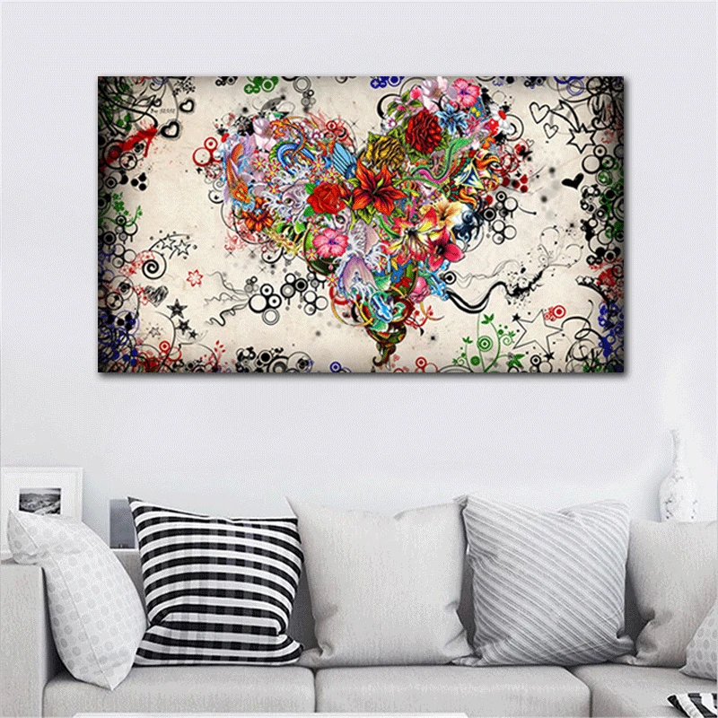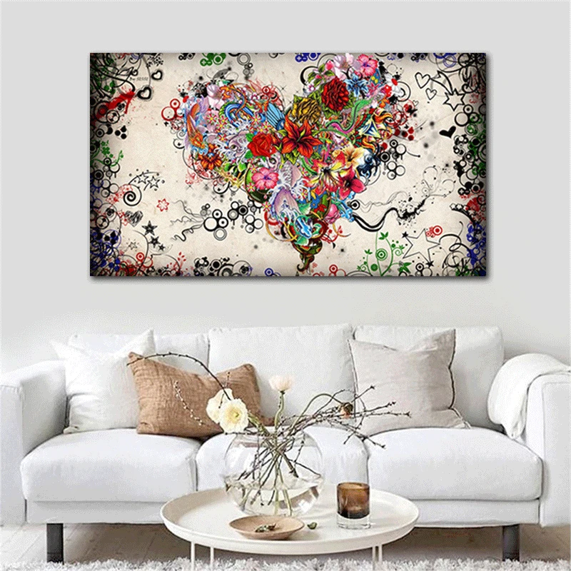 Современная Картина на холсте Love, абстракция, красочные плакаты с цветами в виде сердца и принты, настенные художественные картины, гостиная, Куадрос, домашний декор