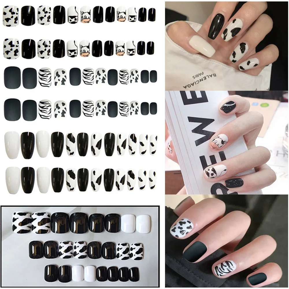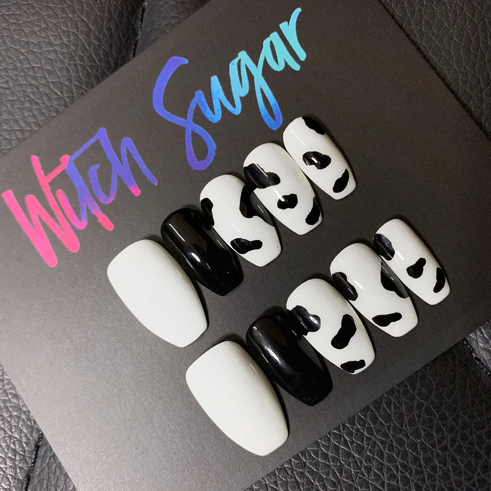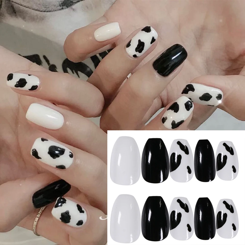 Осенне-зимние черно-белые накладные ногти с коровьим принтом матовые накладные ногти с коровьим леопардовым принтом накладные ногти