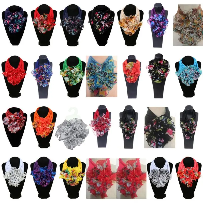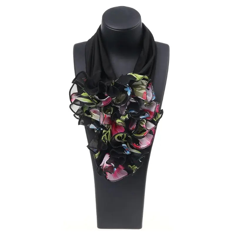 Женский цветочный воротник шарф роскошный цветочный Печатный шейный платок кольцо шейный шарф N58F