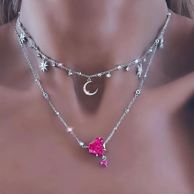 Ожерелье с подвеской в виде сердца, золотого и серебряного цветов, кулон в виде красного сердца