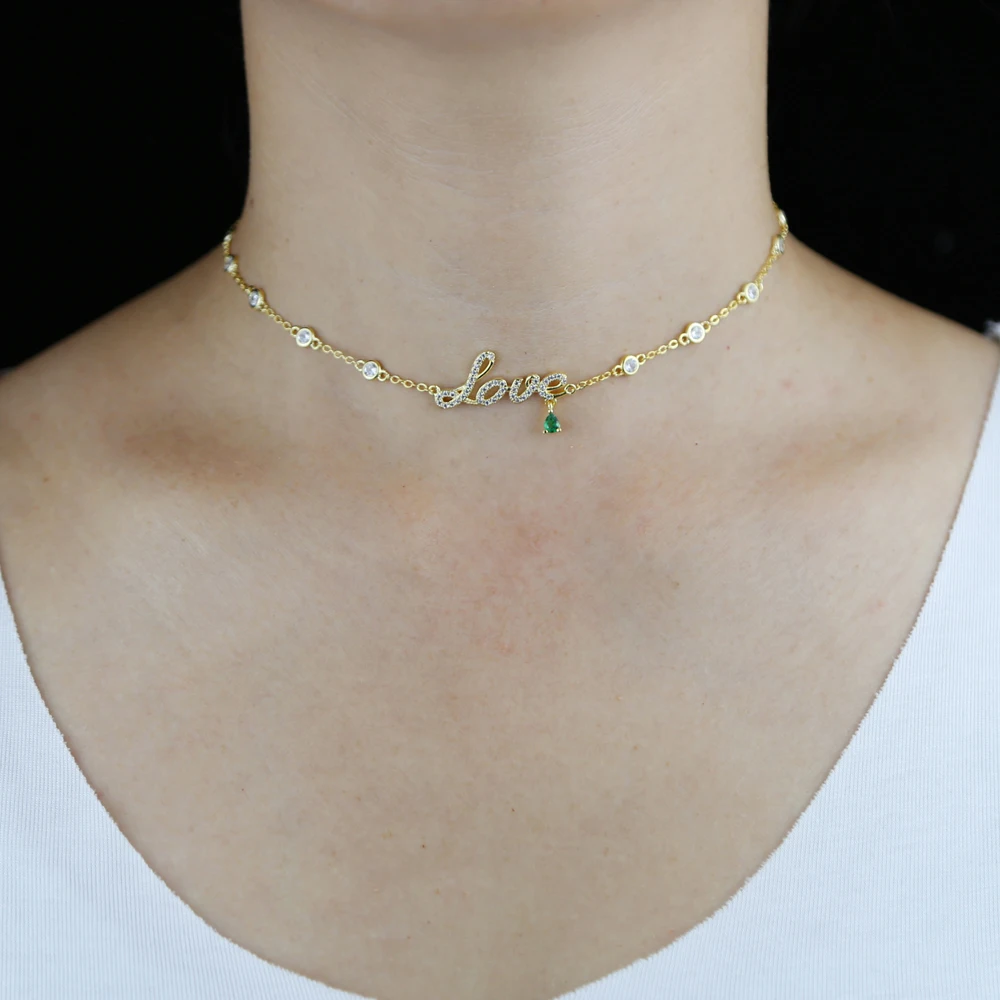 Женское колье-чокер с фианитами, зеленое ожерелье с подвеской в фор...