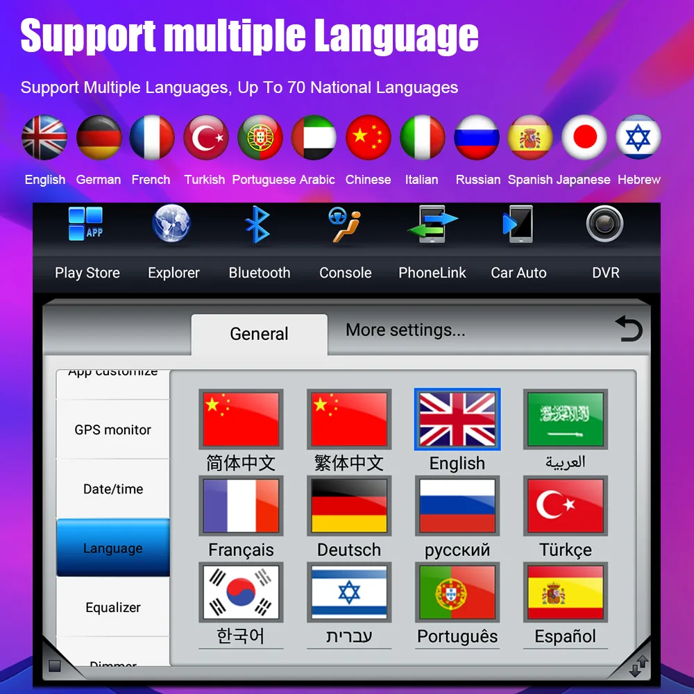 Поддержка нескольких языков, до 70 национальных языков, таких как английский, испанский, итальянский, французский и т. Д.