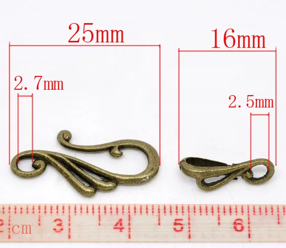 DoreenBeads 7 комплектов ювелирных изделий из цинкового сплава переключатели застежки музыкальные ноты античная бронза 25 мм x 13 мм 16 мм x 5,5 мм отверстие: 2,7 мм 2,5 мм