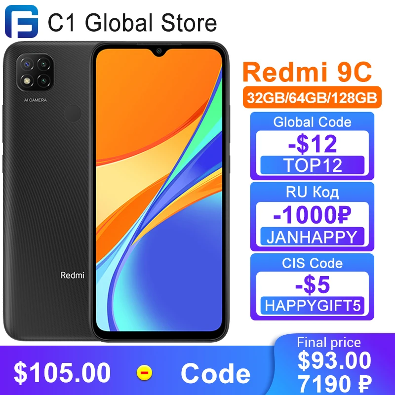 Смартфон Xiaomi Redmi 9C, 32 ГБ64 Гб128 ГБ, Восьмиядерный процессор MTK Helio G35, камера 13 МП, экран 6,53 дюйма, DotDrop, 5000 мАч