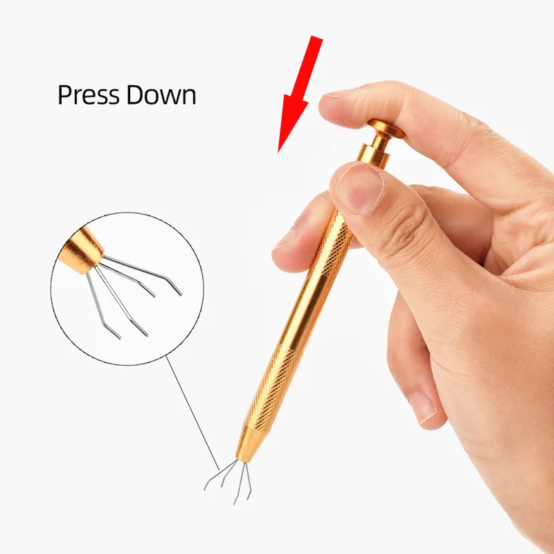 4. Пружинный Плунжер для большого пальца удлиняет 4 зубца, чтобы захватить бусины, маленькие винты и украшения для пирсинга.