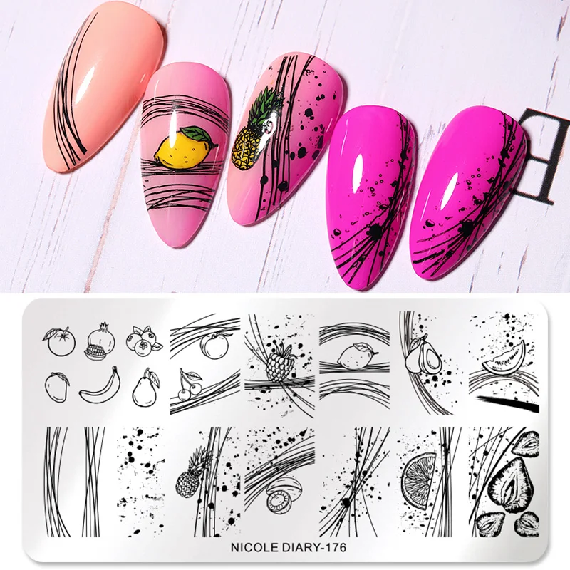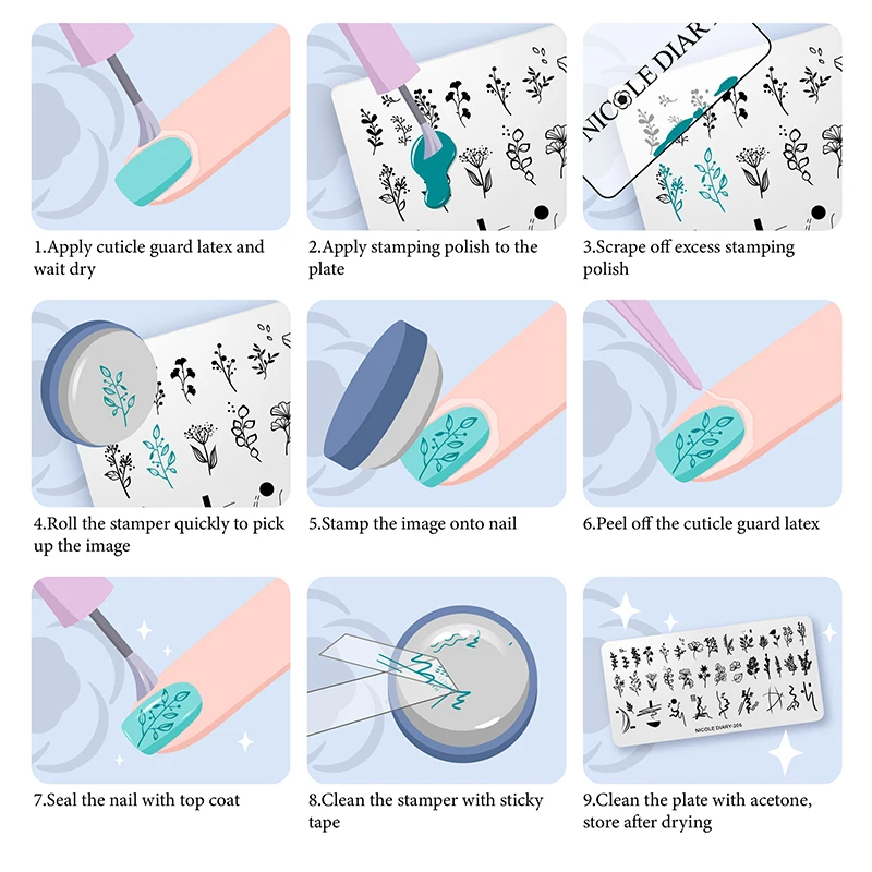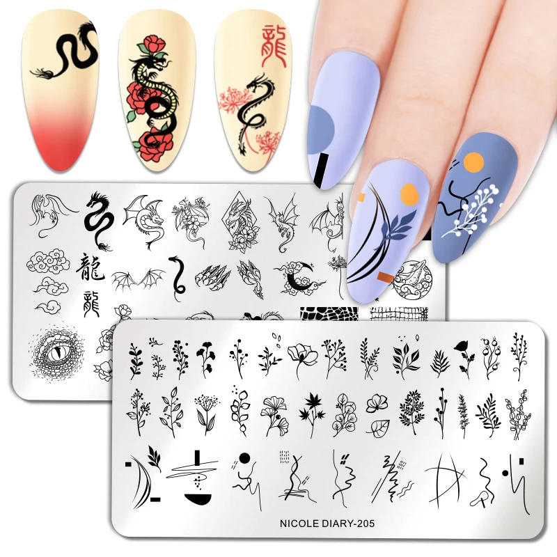 Пластины для стемпинга ногтей с цветами и листьями NICOLE DIARY