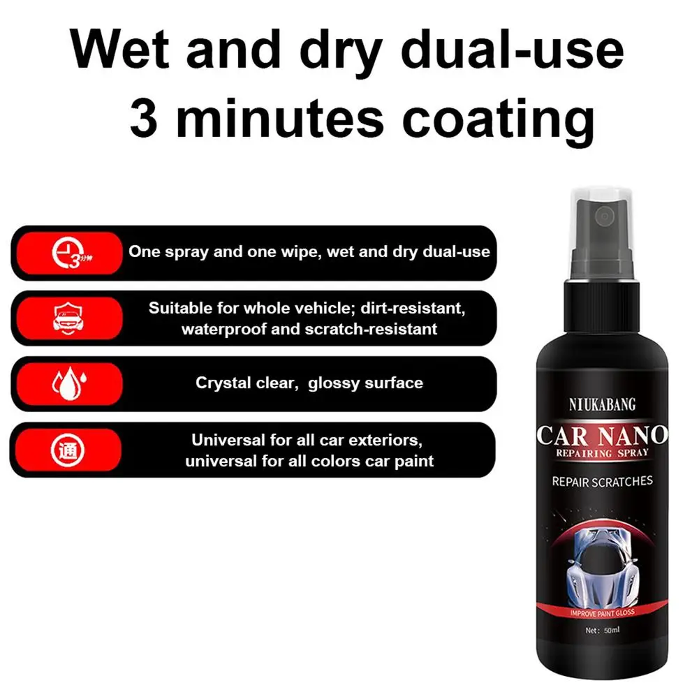 Нано-спрей для ремонта царапин автомобиля, 50 мл, гидрофобный спрей против царапин, хрустальное покрытие, автомобильный лак, уход за краской, полированное покрытие для стекла
