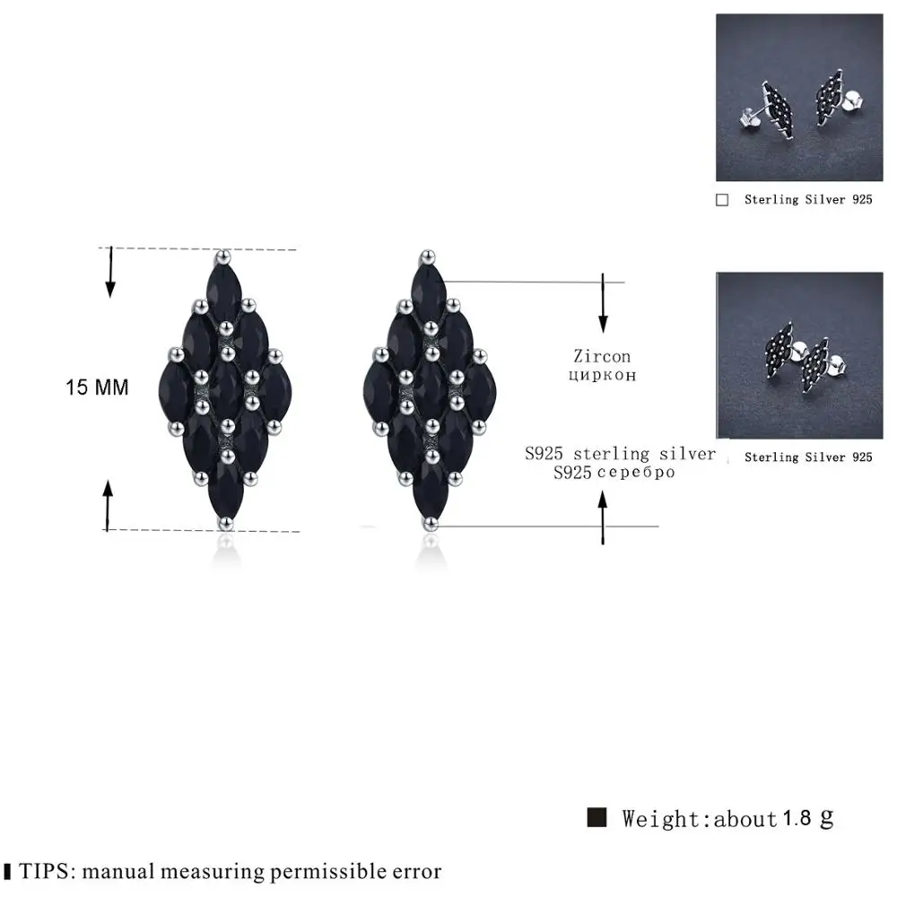 Черный ость 2020 Новое поступление из натуральной 925 стерлингового серебра ювелирные изделия Черный шпинель камень милые вечерние серьги-гвоздики для женщин I086