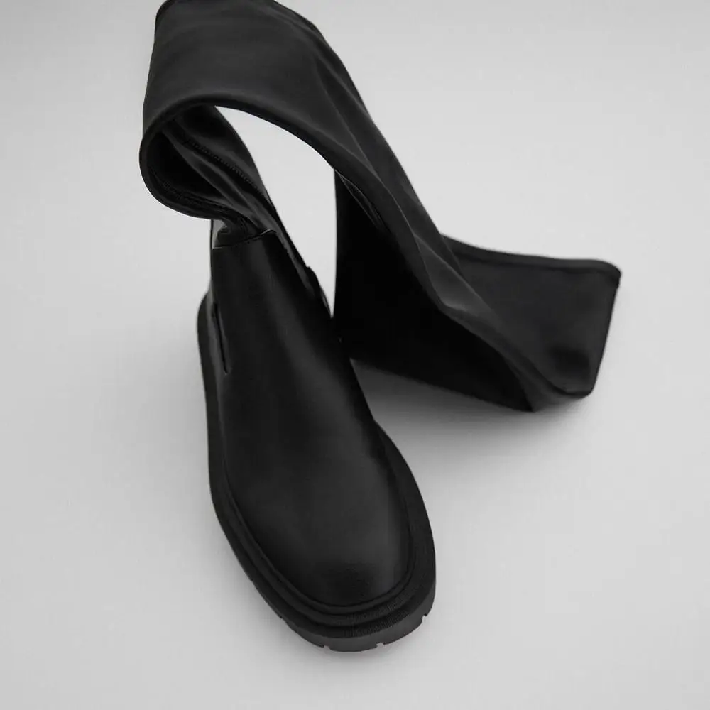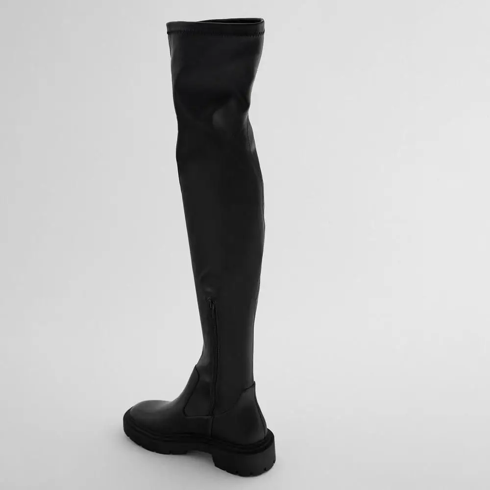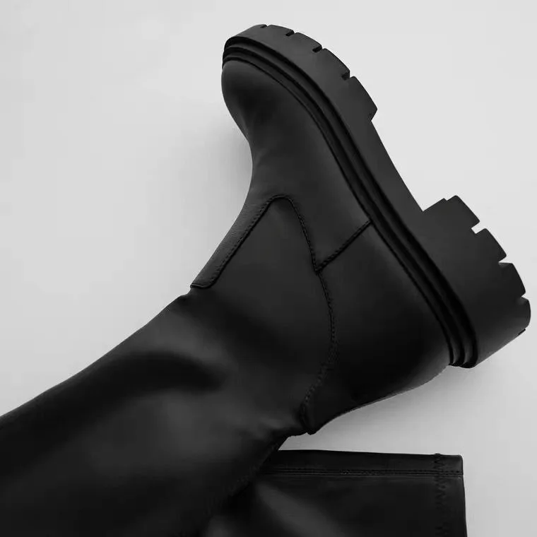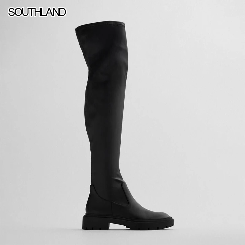 SOUTHLAND Новая зимняя женская обувь на высоком каблуке; Растягивающиеся сапоги с не сужающимся книзу массивным каблуком, на платформе, без шнуровки, Женские Сапоги выше колена