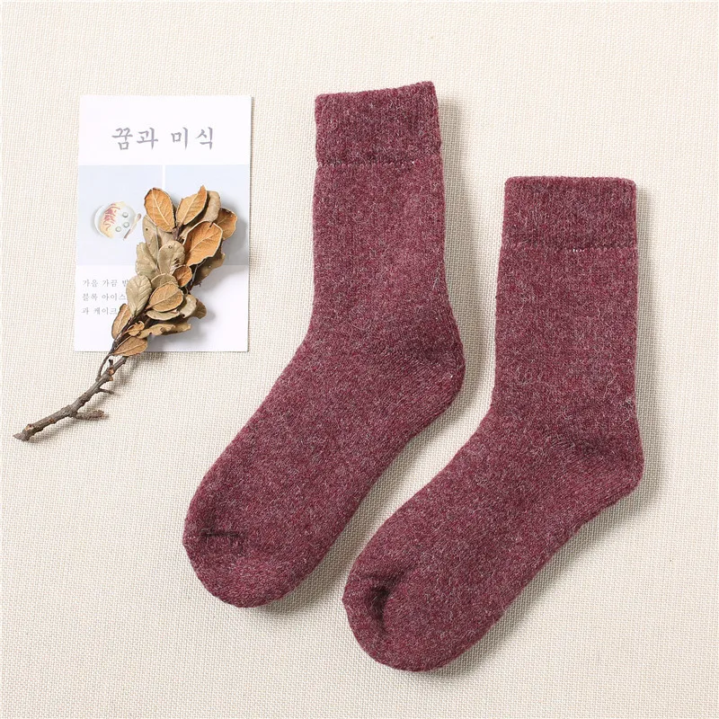 Зимние супер толстые шерстяные носки, мужские и женские теплые кашемировые носки, однотонные толстые и бархатные носки-полотенца